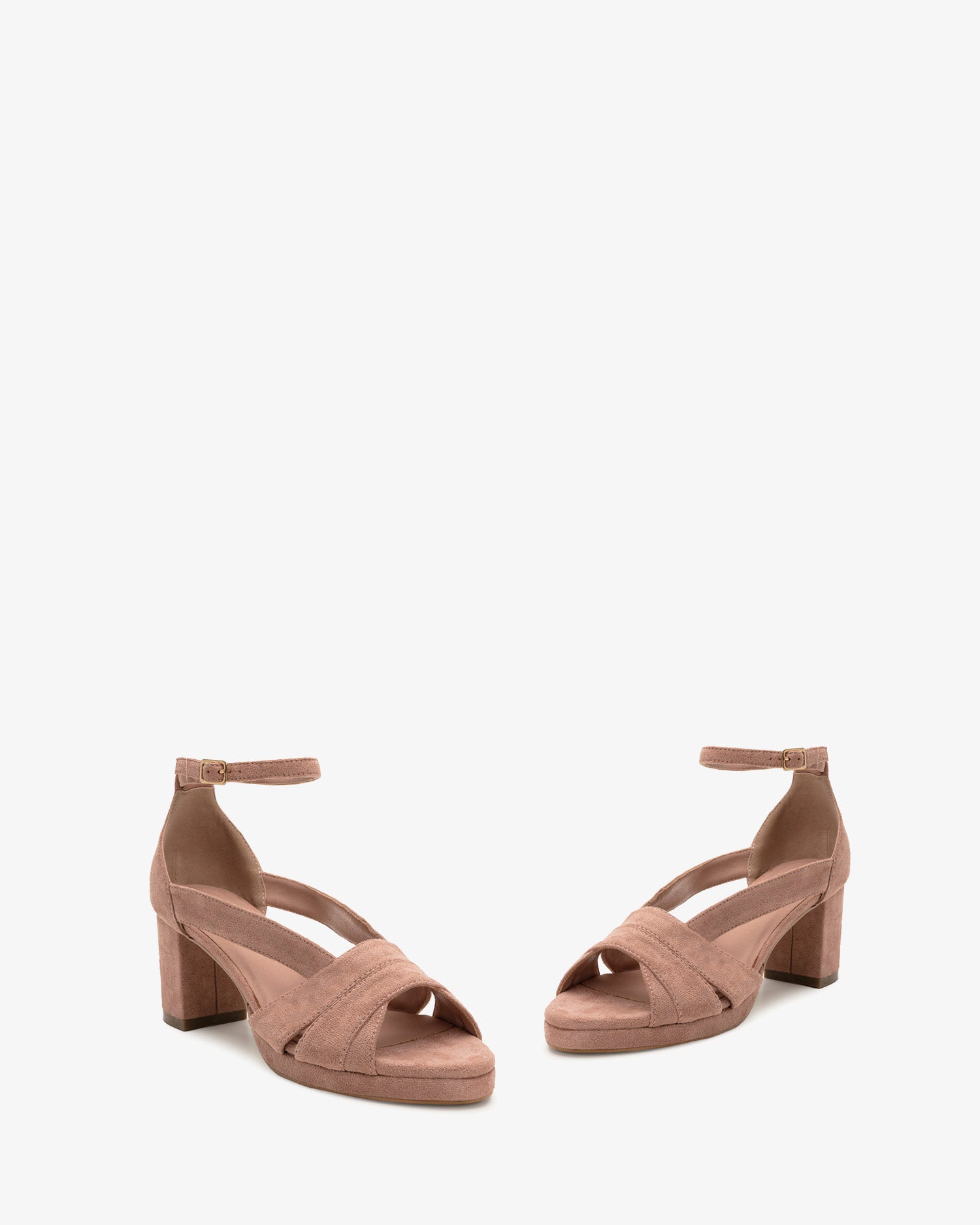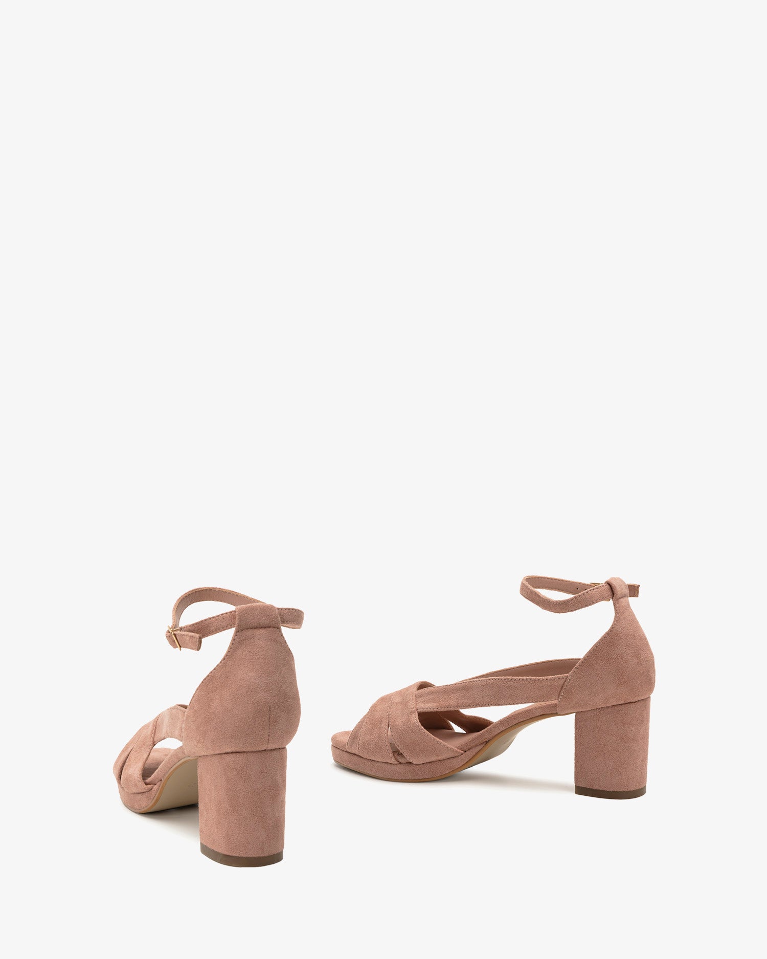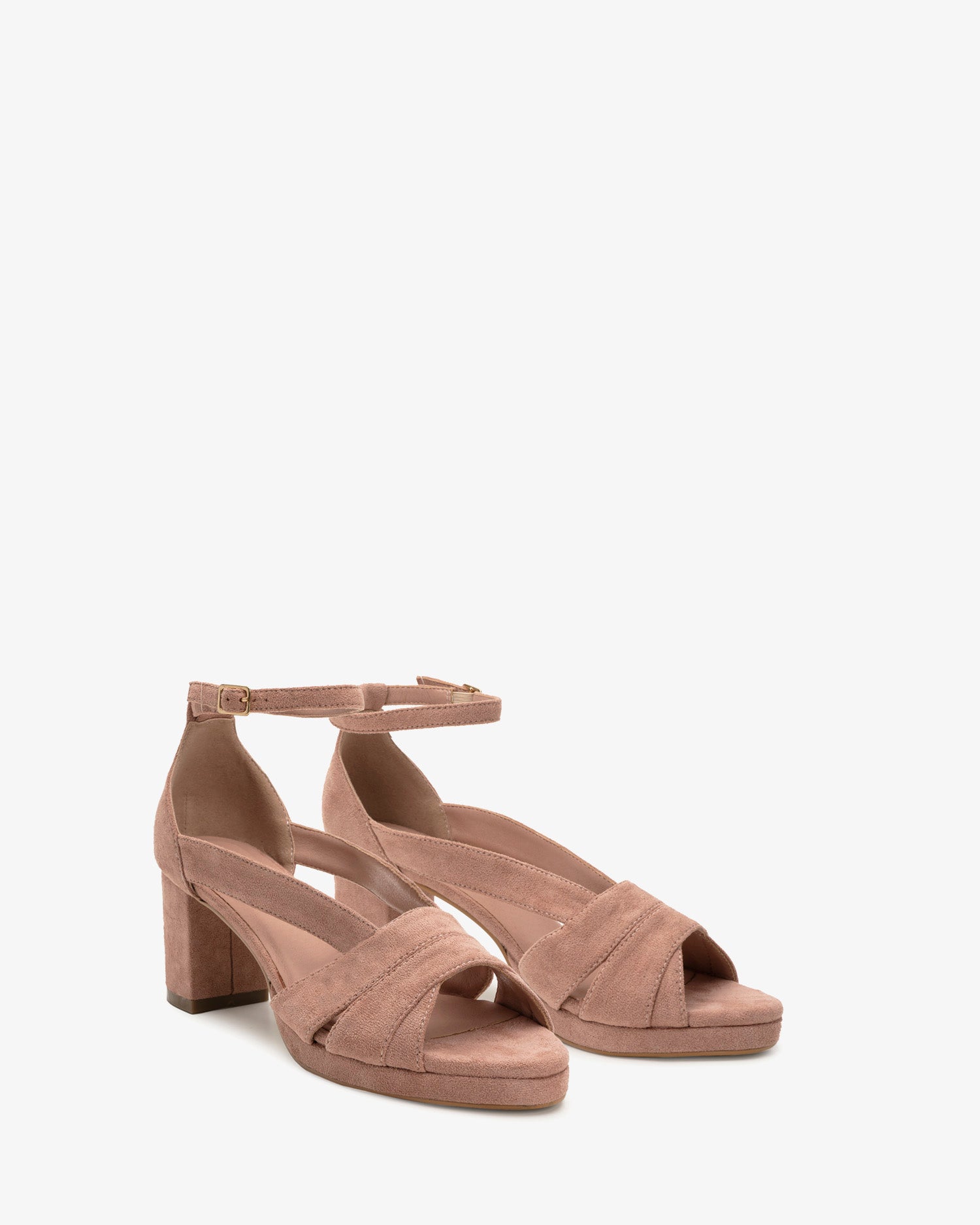 Brown faux suede heeled sandals designed with wide straps joined in the middle, over the vamp and matching counter. Open, elongated and round toe box. Buckled strap closure around the ankle. The wide heel and platform are both lined in the same brown faux leather as the rest of the shoe. The wide heel is 6 cm / 2.36`` high and the platform is 1 cm / 0.39`` high for small sizes from 32 to 35 EU. The wide heel is is 7.5 cm / 2.95`` high and the platform is 1.5 cm / 0.59`` high for large sizes from 42 to 45 EU.