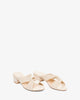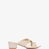 Off-white faux leather mules with wide heel. Intertwined straps over the instep. Round and open toe box. The matching heel is 1,97`` for small sizes from 32 to 35 EU. The matching heel is 2,16`` for small sizes from 42 to 45 EU.