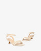 Off-white faux leather sandals with kitten heel. Slingback design featuring two matching braided straps across the vamp. Buckled strap closure around the ankle. Open and square toe box. The matching heel is 5cm /1,97`` for small sizes from 32 to 35 EU. The matching heel is 5,5cm /2,16`` for small sizes from 42 to 45 EU.