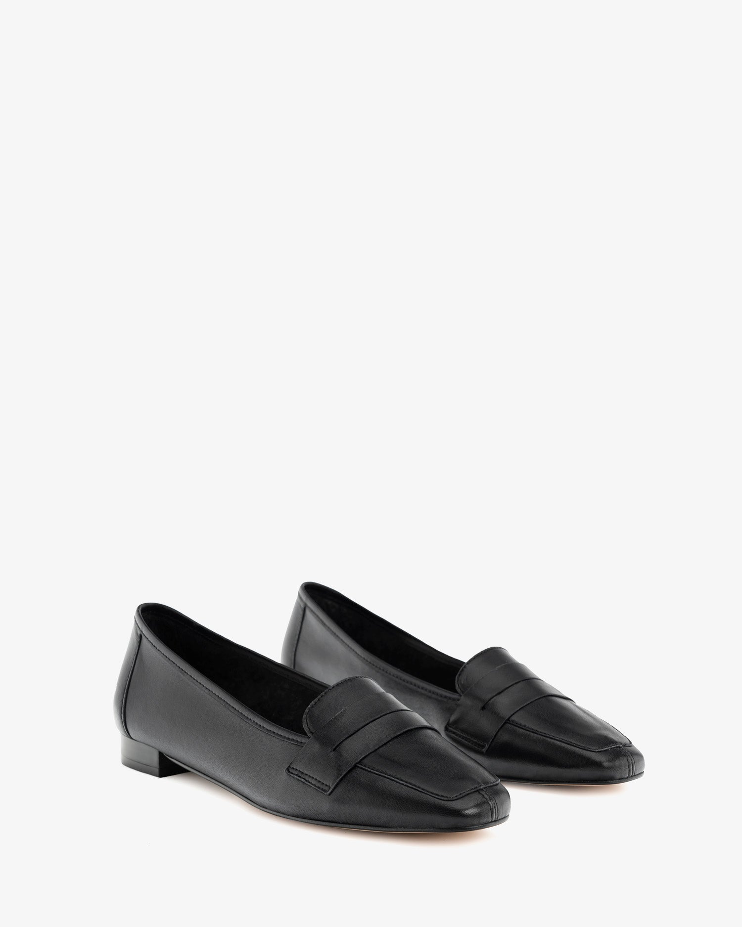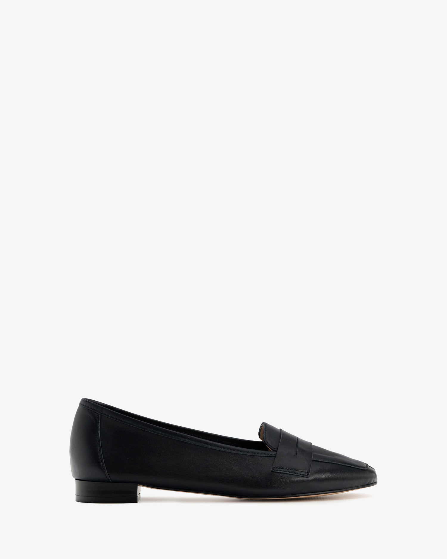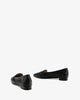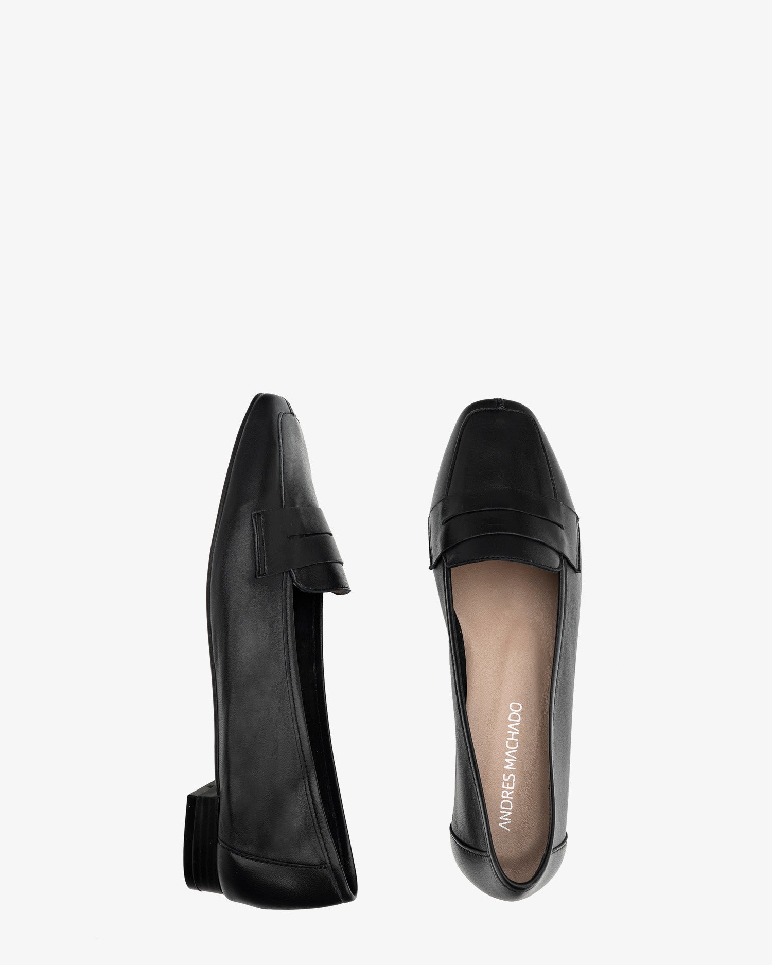 Loafer in black smooth leather. Designed with saddle detail over the vamp and finished with a square toe. Beige inner lining. The heel has a wooden effect laminate and is 1.5 cm / 0.59`` high for sizes from 32 to 38 EU. The heel is 2 cm / 0.78`` high for sizes from 39 to 45 EU.