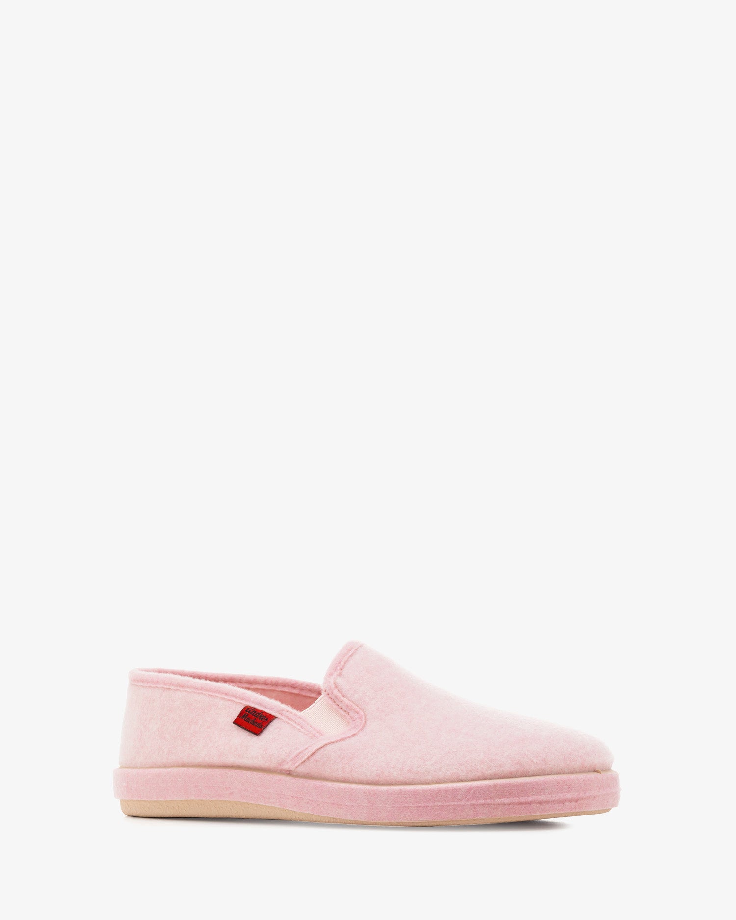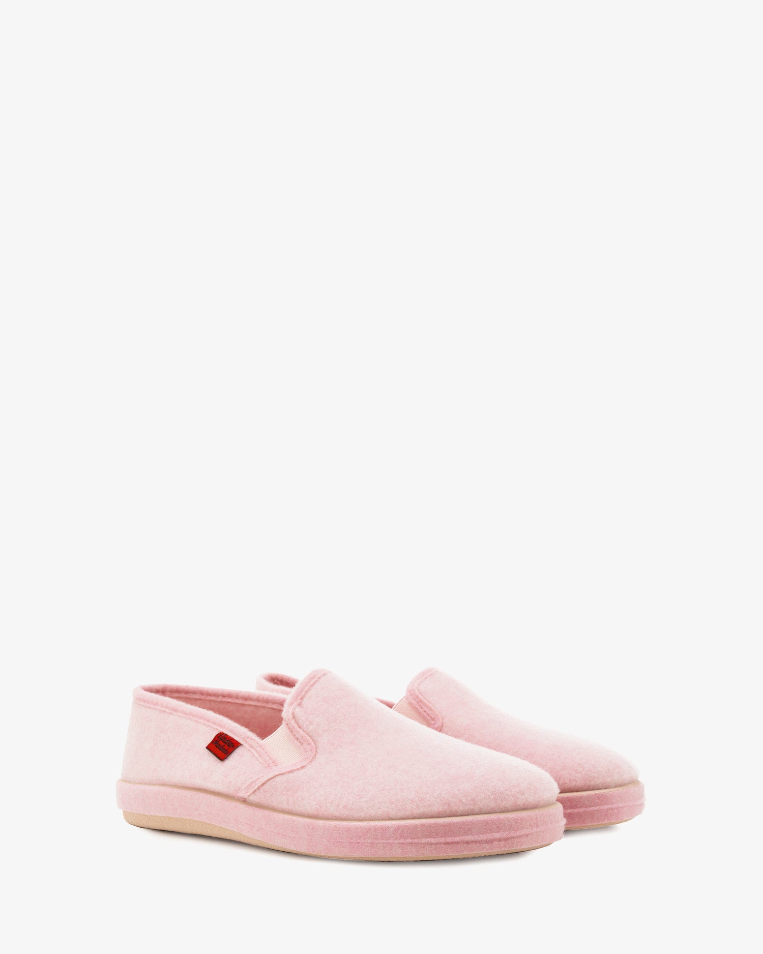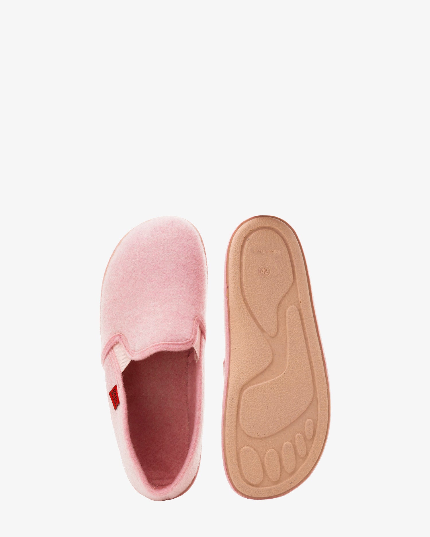 Anatomical closed-back slippers in Pink Alpine Felt. Lining in the same material. Built-in foot massage for maximized comfort. Without a doubt, the best slippers in the market. Vulcanized Natural Rubber Sole in colour Pink. Truly a luxury for your feet. Sizes from, EU 32 to 50.