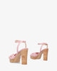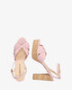 Pink fabric sandal with cork-effect heel