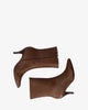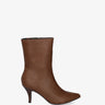 High-top booties in brown colored faux leather. Decorative stitching from the tip of the toe box to the upper edge of the shaft. Finished in a pointed toe. Matching zipper closure on the internal side of the shaft. The thin mid heel lined in matching croc texture is 6.5 cm / 2.55`` high for small sizes from 32 to 35 EU and 8 cm / 3.14`` high for large sizes from 42 to 45 EU.