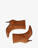 High-top booties in camel colored faux leather. Decorative stitching from the tip of the toe box to the upper edge of the shaft. Finished in a pointed toe. Matching zipper closure on the internal side of the shaft. The thin mid heel lined in matching croc texture is 6.5 cm / 2.55`` high for small sizes from 32 to 35 EU and 8 cm / 3.14`` high for large sizes from 42 to 45 EU.