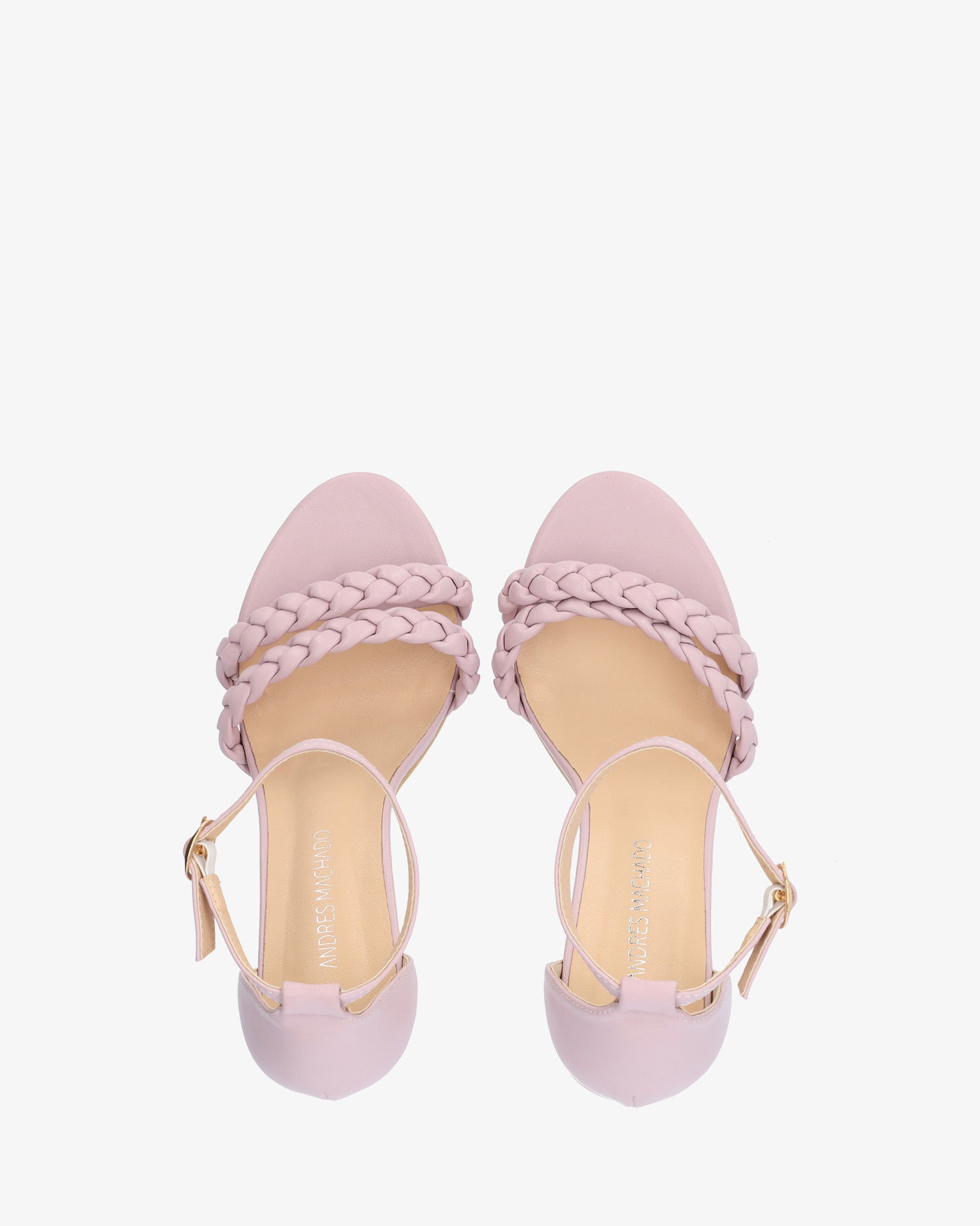 Purple faux leather heeled sandals with matching braided straps over the open toe box. Buckled strap closure around the ankle and matching counter. The thin, matching heel is 9cm / 3,54`` for small sizes from 32 to 35 EU. The thin, matching heel is 10,5 cm/4,13`` for small sizes from 42 to 45 EU.