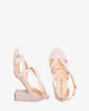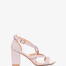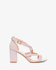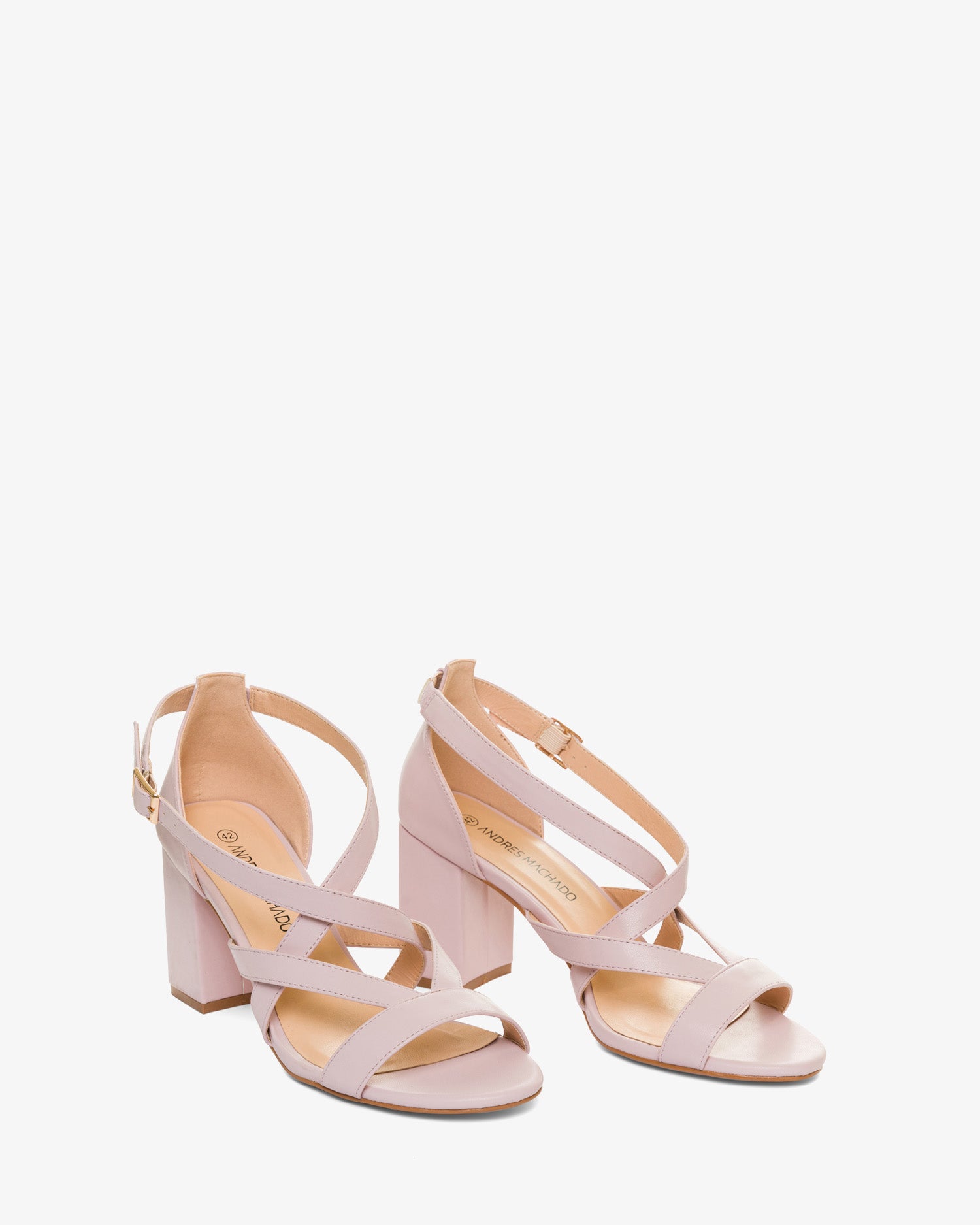Purple faux leather sandlas with block heel. Closed counter featuring crossed straps over the instep. Matching buckled strap closure around the ankle. Round and open toe box. Heel of 2,75" for small sizes from 32 to 35 EU. Heel of 3,54" for large sizes from 42 to 45 EU.