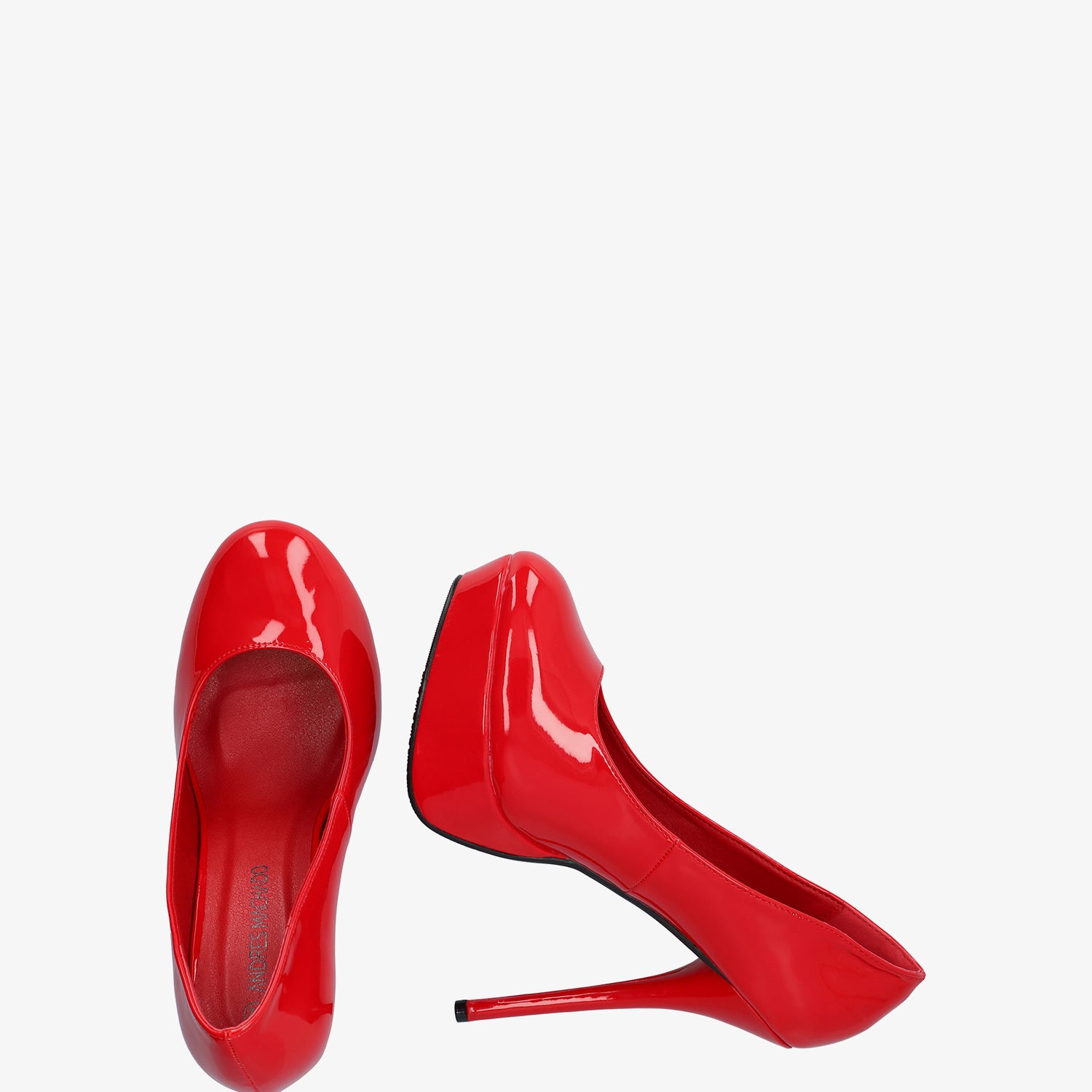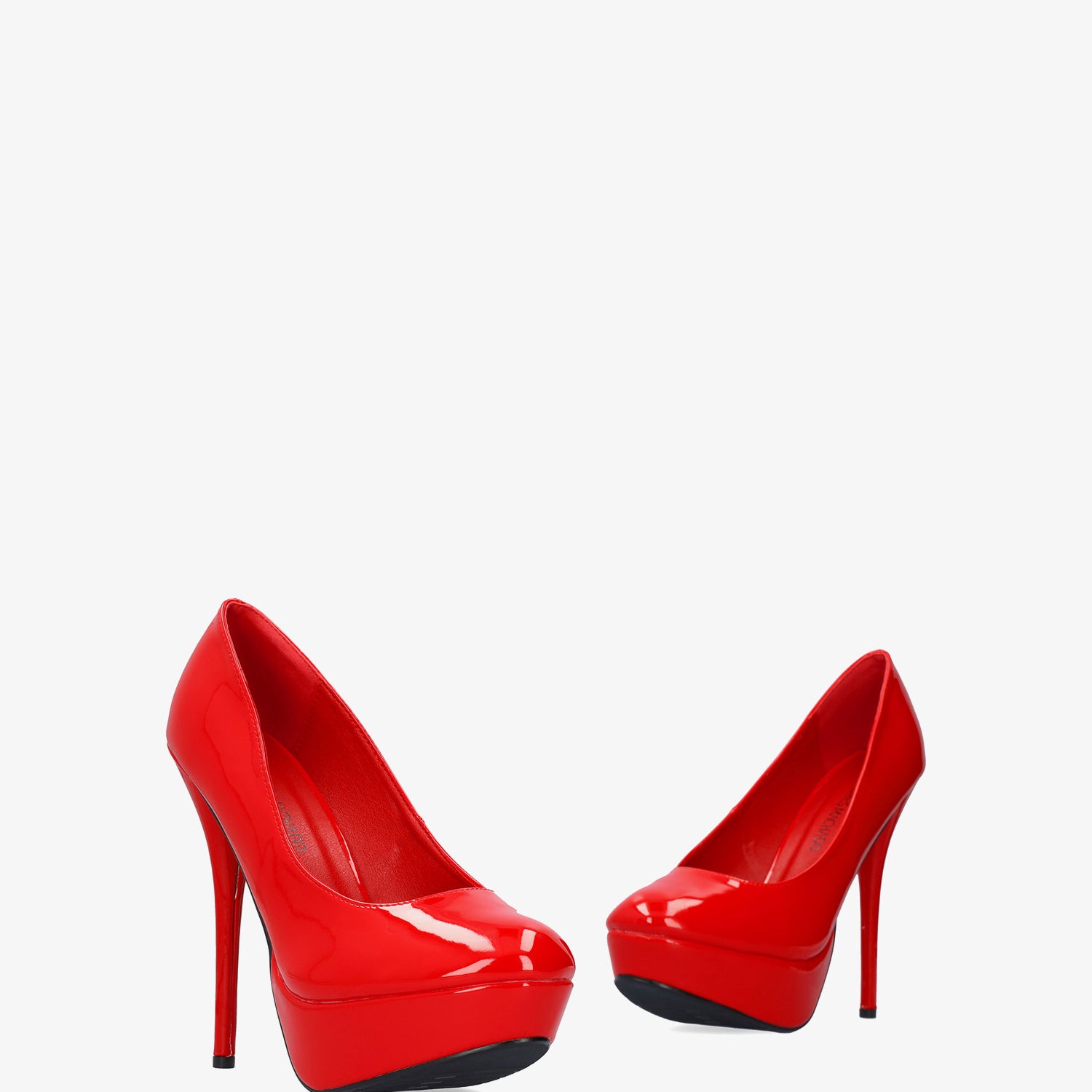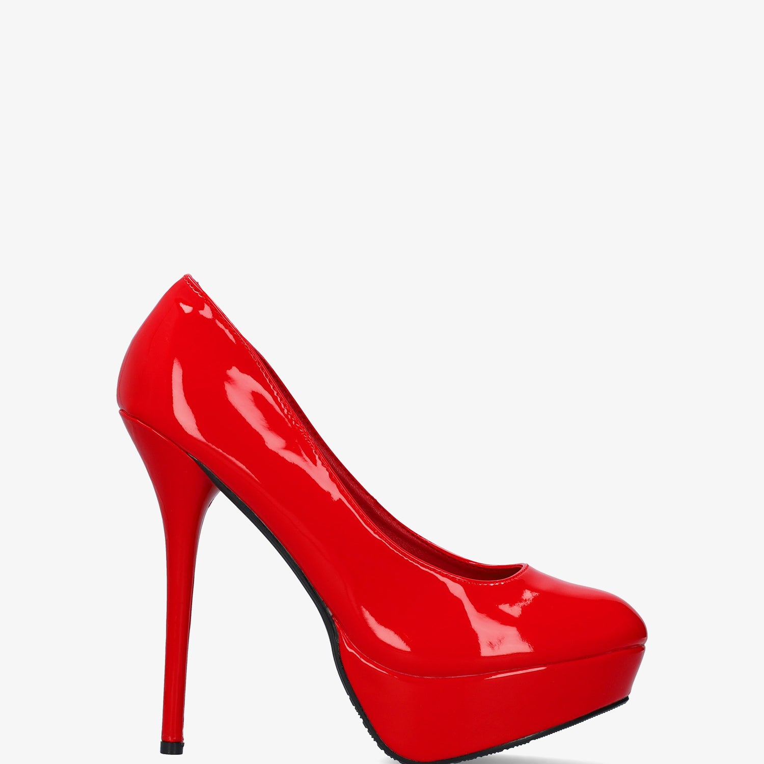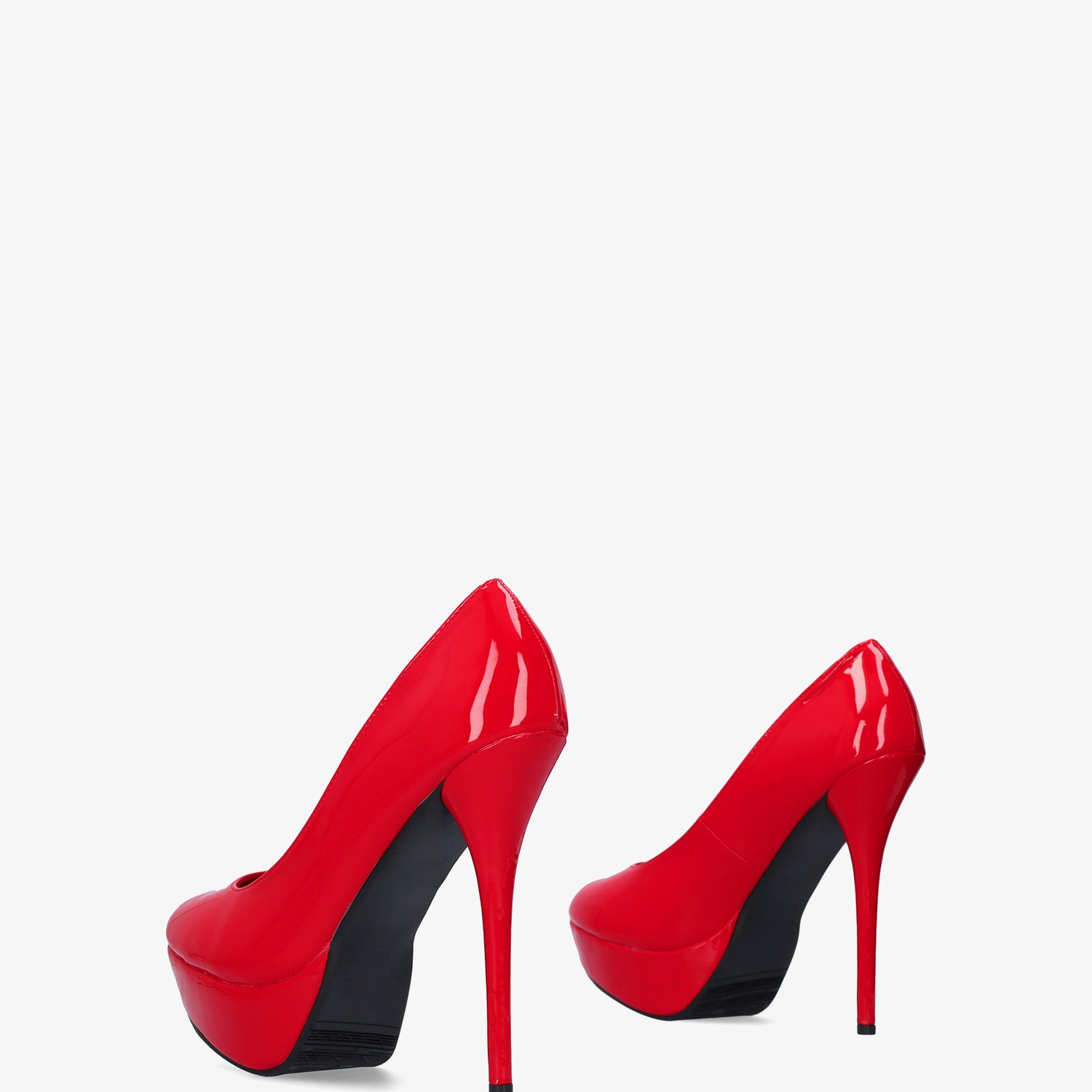 Red patent platform pumps with stiletto heel