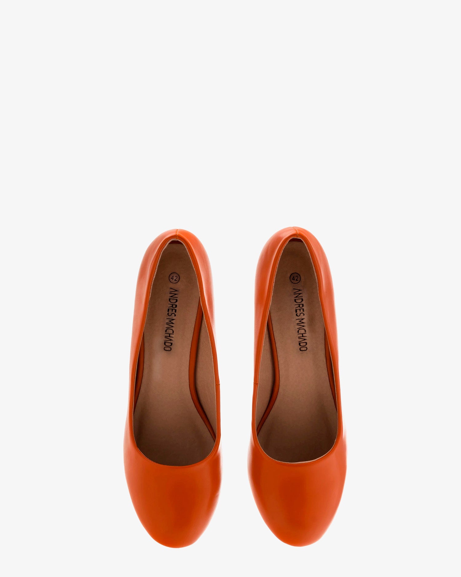Orange coloured retro pumps in faux soft-leather. Classic style last and heel making of this stylish shoe an eternal must. Very comfortable fit with rounded toe and stiletto heel covered in the same tone. Available in a very wide range of sizes: Small, Medium and Big from UK 0.5 to 11.5 / EU 32 to 46. Heel of 3.74" / 9.5 cm for sizes from UK 0.5 to 5.5 / EU 32 to 39. Heel of 3.54" / 9 cm for sizes from UK 0.5 to 2.5 / EU 32 to 35. Heel of 3.74" / 9.5 cm for sizes from UK 3.5 to 5.5 / EU 36 to 39. Heel of 3.93" / 10 cm for sizes from UK 6.5 to 11.5 / EU 40 to 46. This model fits small, we recommend taking one size larger than usual.