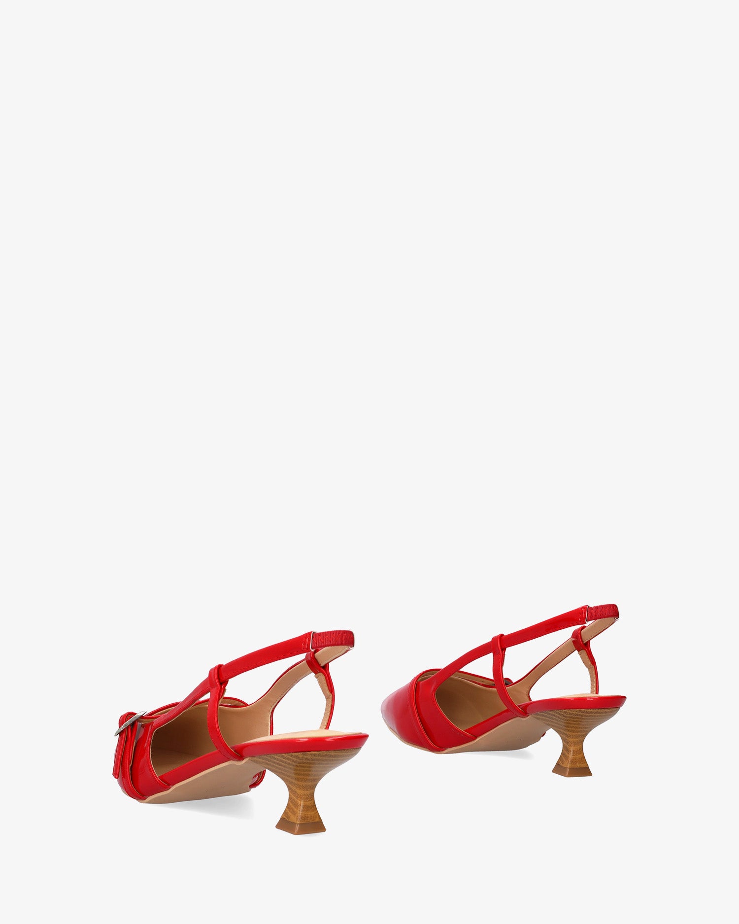 Slingback red patent shoes with a kitten heel