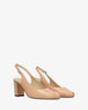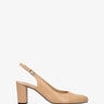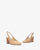Slingback stilettos in Nude nappa leather with slingback buckle closure. Rounded toe. Matching lined wide heel of 3.14" / 8 cm for Petite sizes from UK 0.5 to 2.5 / EU 32 to 35 and of 3.54" / 9 cm for Large sizes from UK 8 to 10.5 / EU 42 to 45. Made in Spain