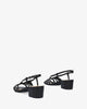 Slingback sandal with tone-on-tone straps joined across the instep. Tone-on-tone covered wide heel. Side buckle fastening. • 5.5 cm heel for small sizes 32 to 35. • 6 cm heel for large sizes 42 to 46.