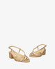 Soft gold slingback sandal with a wide heel