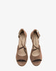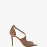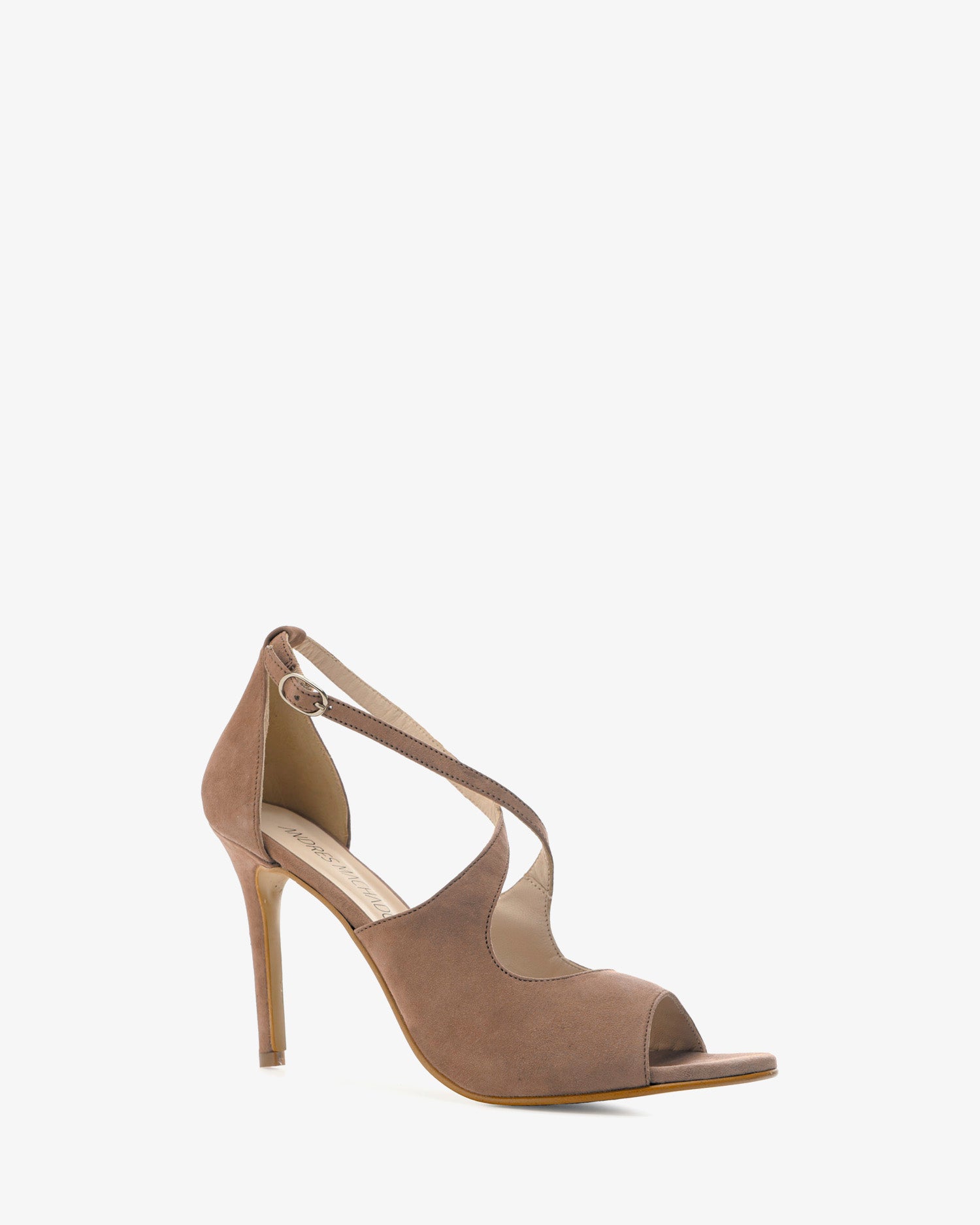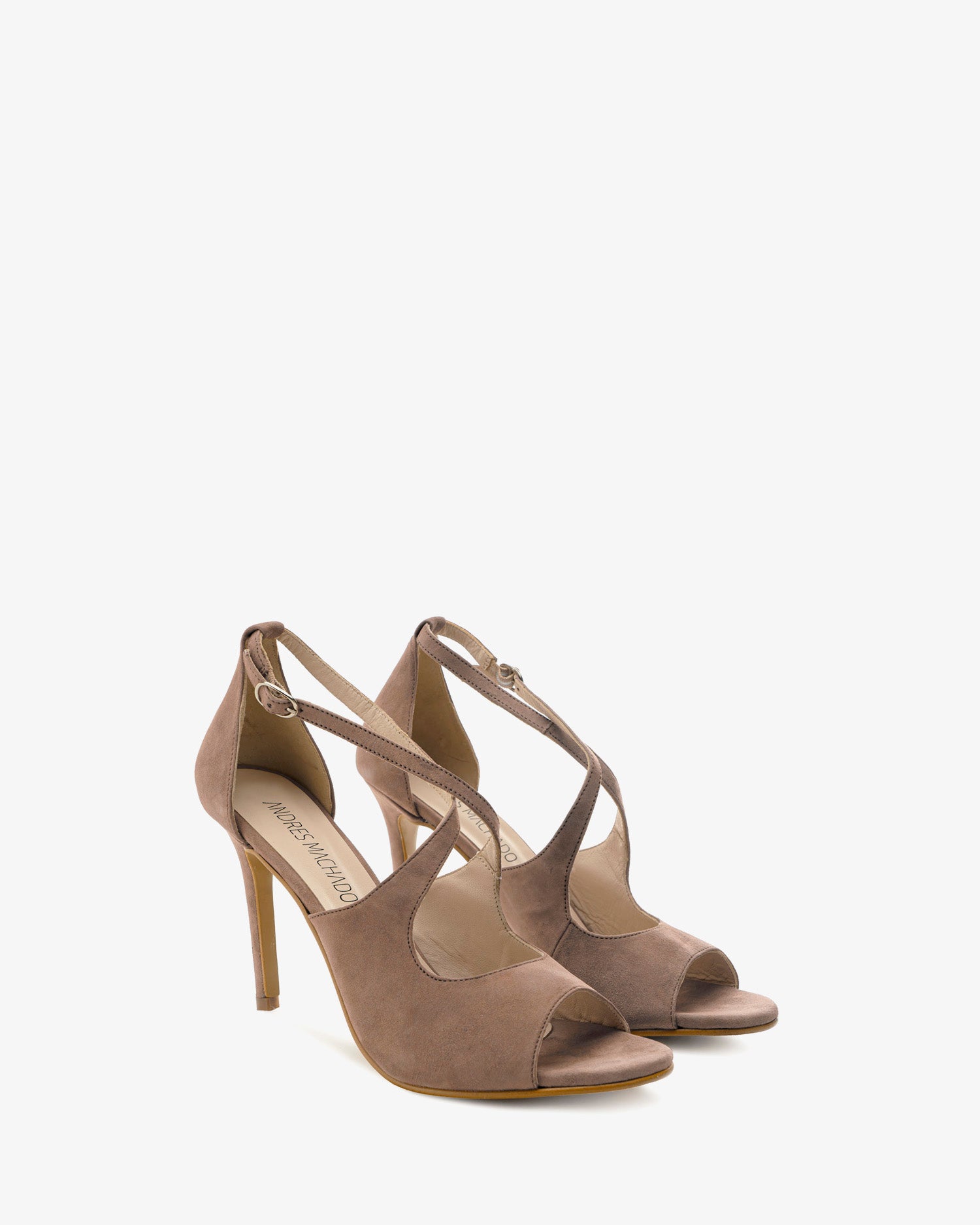 Heeled sandals made of Beige suede leather. Crossed straps over the instep with ankle metallic buckle closure. Heel covered in Beige suede leather. Inner lining in leather. Toned-coloured stiletto heel of 4.13" / 10.5 cm for Small sizes from UK 0.5 to 2.5 / EU 32 to 35. Toned-coloured stiletto heel of 4.53" / 11.5 cm for Big sizes from UK 8 to 10.5 / EU 42 to 45. Made in Spain.