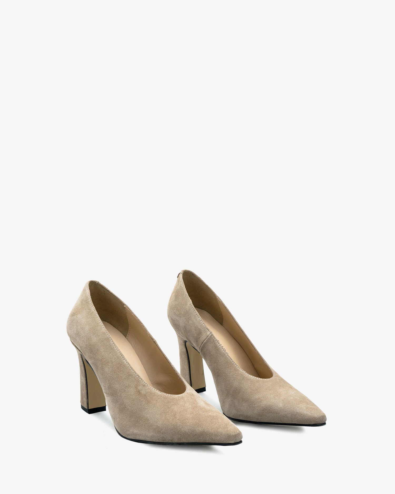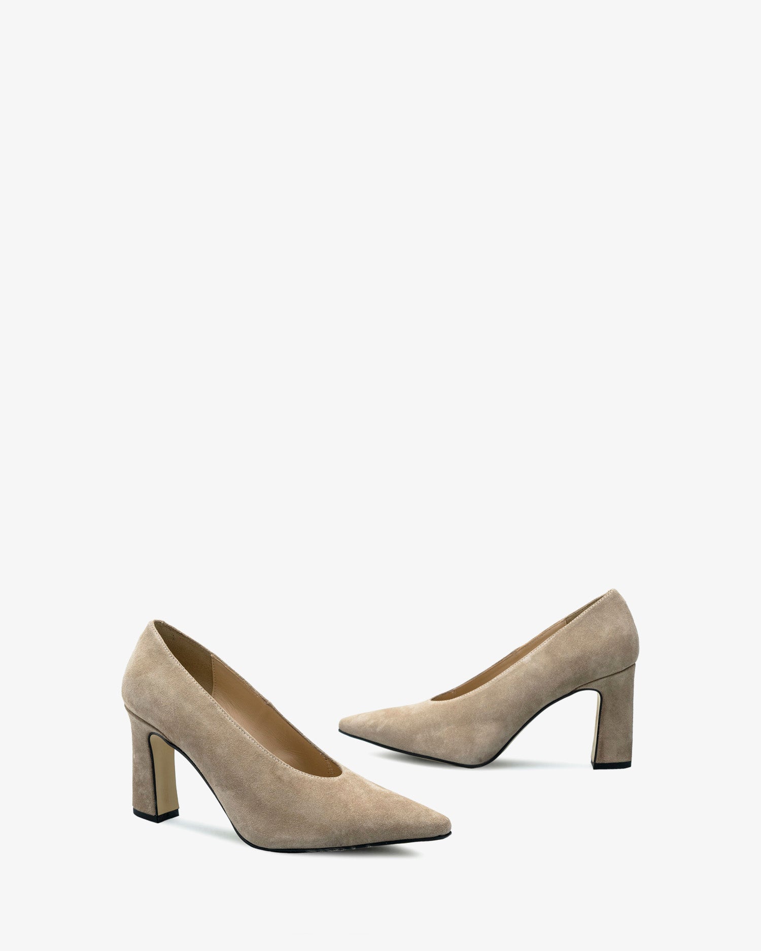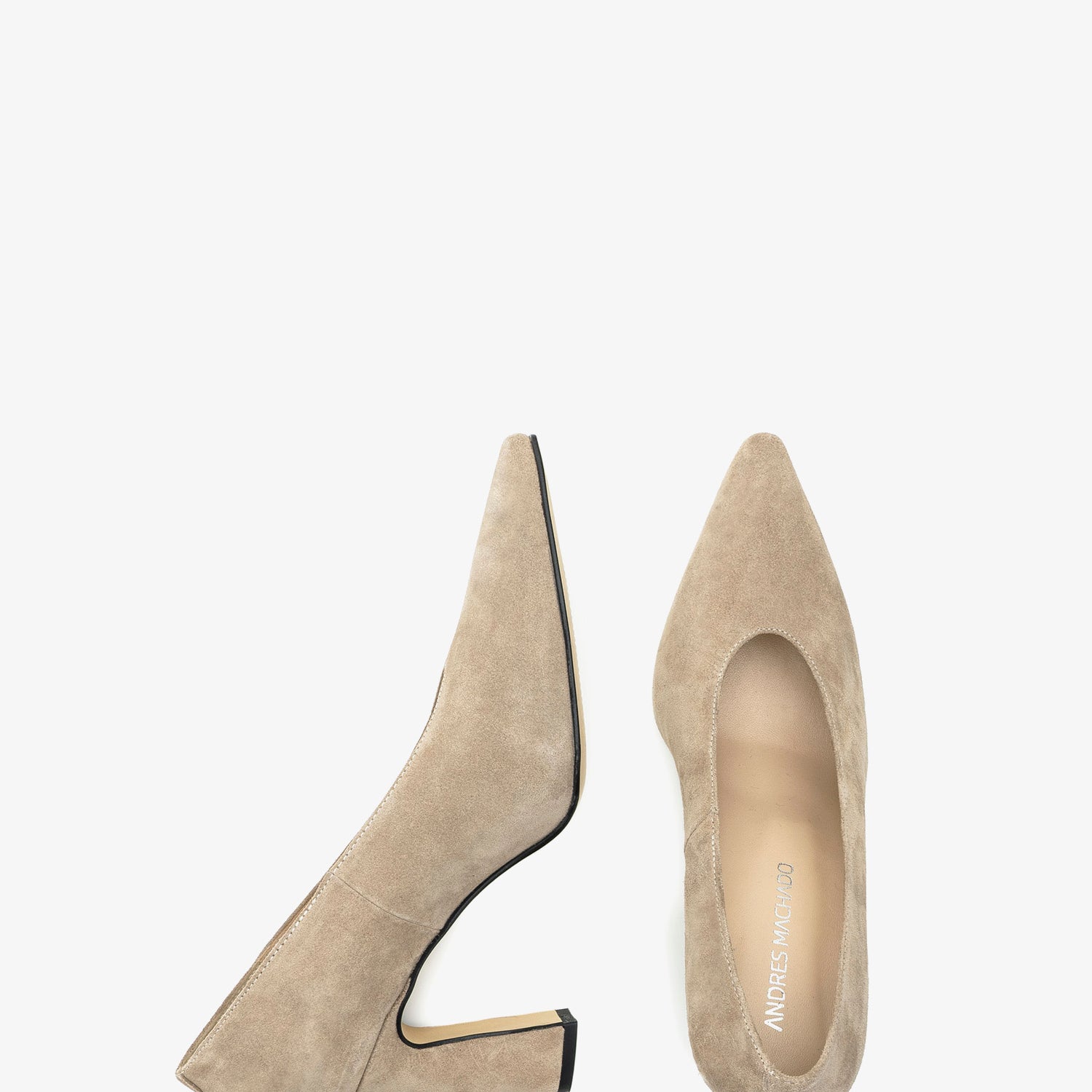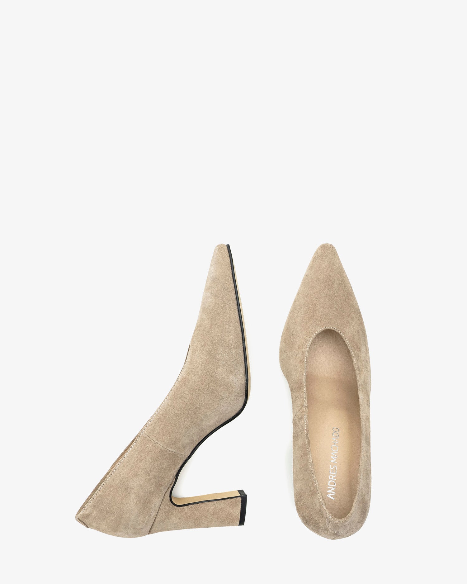 Light brown split leather stilettos. Pointed toe. Inner lining in camel-colored leather. Wide matching 8,5cm/ 3.34in heel for small sizes from 32 to 35. 9,5cm/ 3.74in heel for large sizes from 42 to 45. Made in Spain.