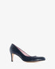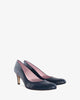Stilettos in Navy leather. Lining and insole made in Rose leather. Matching mid-heel of 2.75" / 7 cm for small and medium sizes from EU 32 to 41. Matching mid-heel of 3.14" / 8 cm for large sizes from EU 42 to 45. Made in Spain. This model fits large, we recommend taking one size smaller than usual.