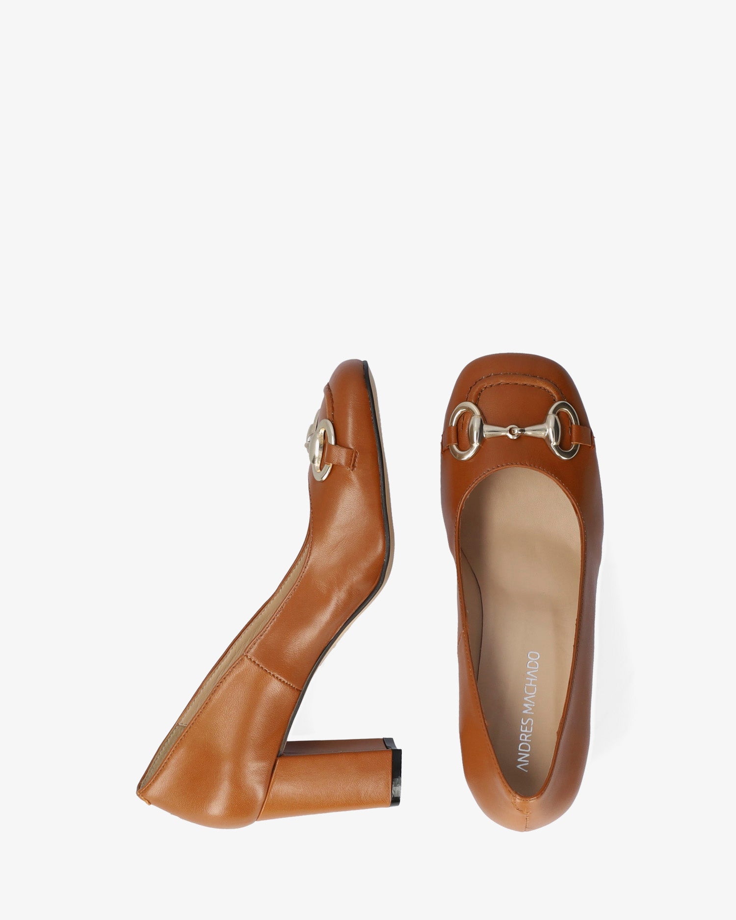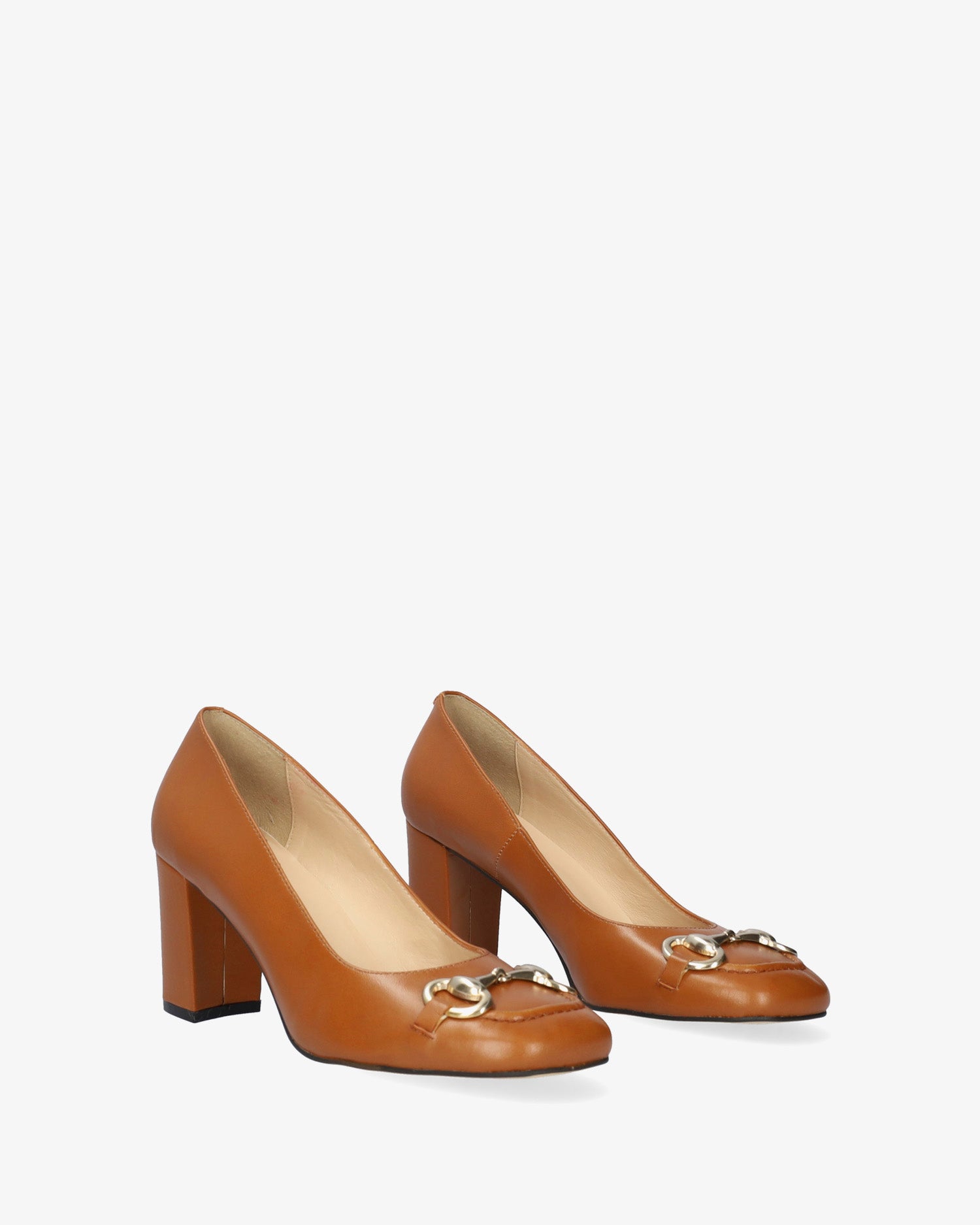 Vintage style shoes in brown leather. Metallic gold buckle detail on the vamp. Finished in a square toe. Beige leather inner lining. The wide heel, lined in matching leather, is 7 cm / 2.75`` high for small sizes from 32 to 35 EU, 7.5 cm / 2.95`` high for medium sizes from 36 to 41 EU and 7.5 cm / 2.95`` high for large sizes from 42 to 45 EU. Made in Spain.