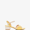 Yellow faux leather sandals with wide heel. Slingback design featuring a wide, contrasting strap over the vamp. Buckled strap closure around the ankle. Round and open toe box. The matching heel is 1,97`` for small sizes from 32 to 35 EU. The matching heel is 2,16`` for small sizes from 42 to 45 EU.