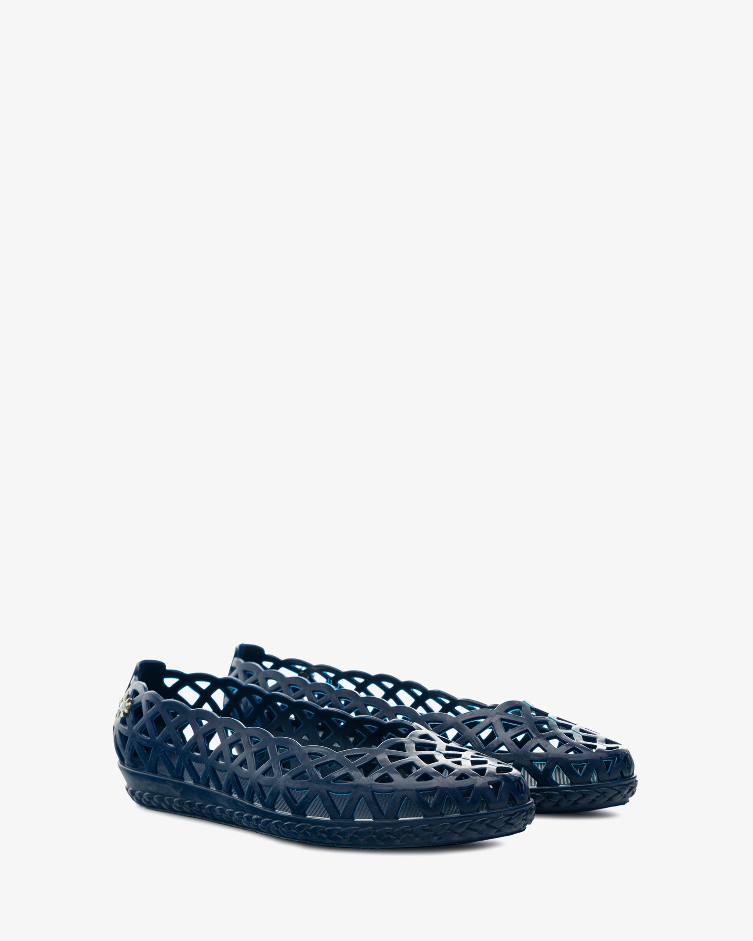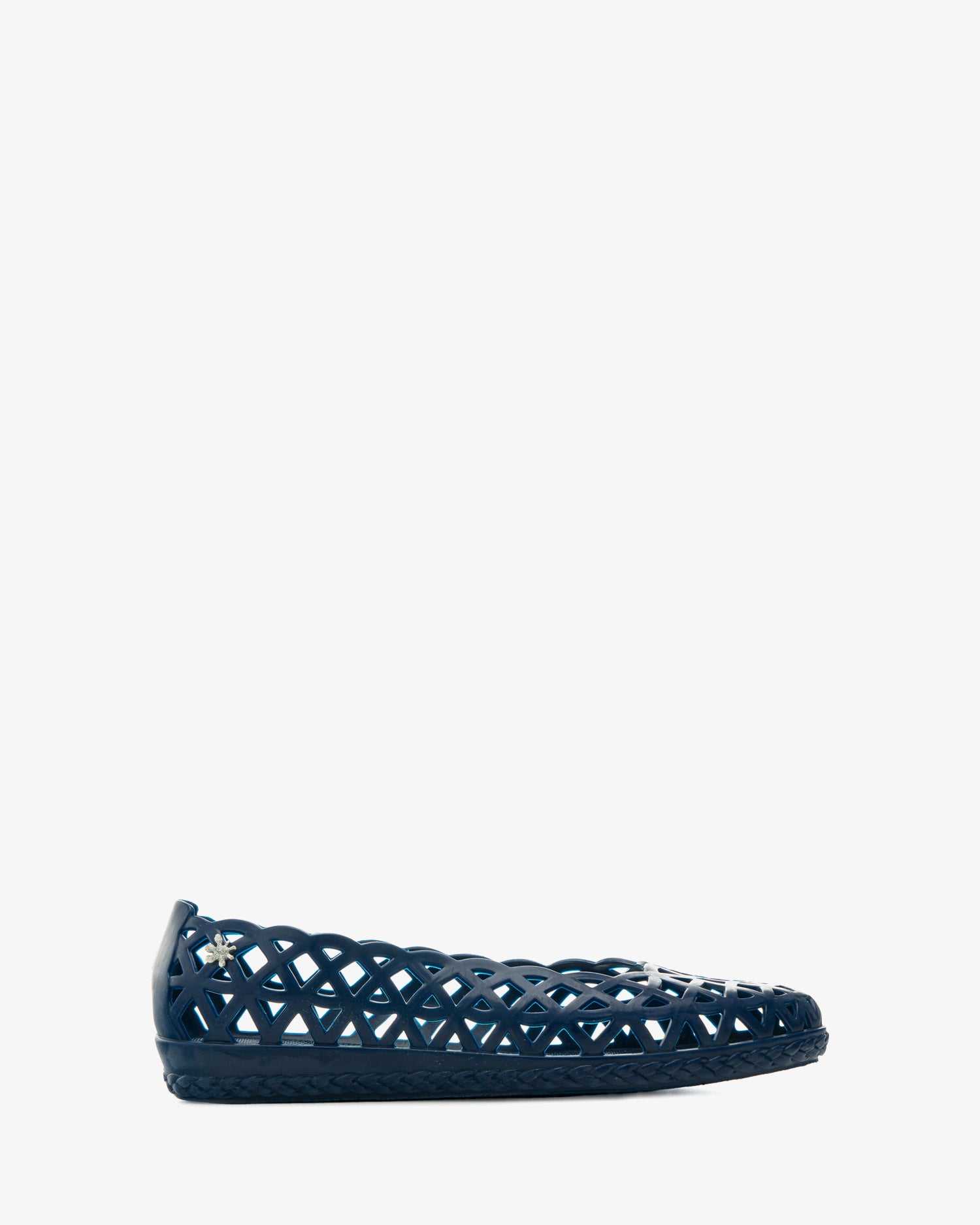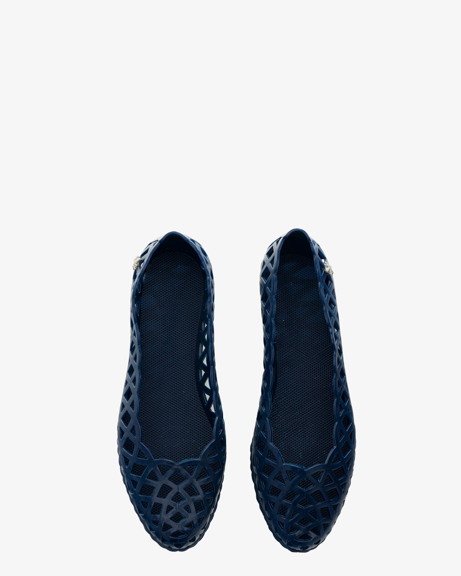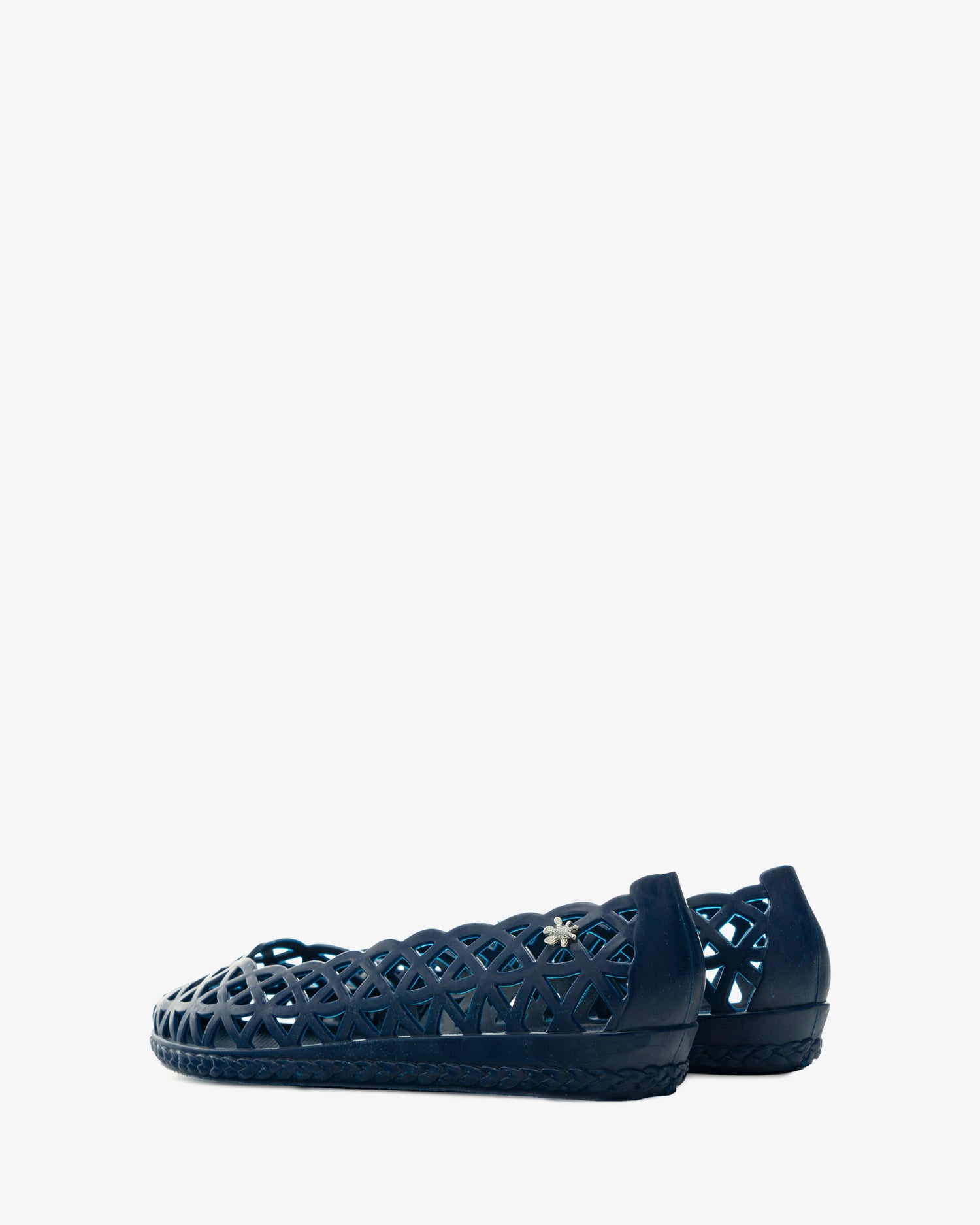 Ballerines fabriquées en PVC en couleur Bleu Marine ajourées sur la tige. Bon arrondi et semelle large. Ballerines idéales pour les chaudes journées d'été. Pointures du 37 au 41