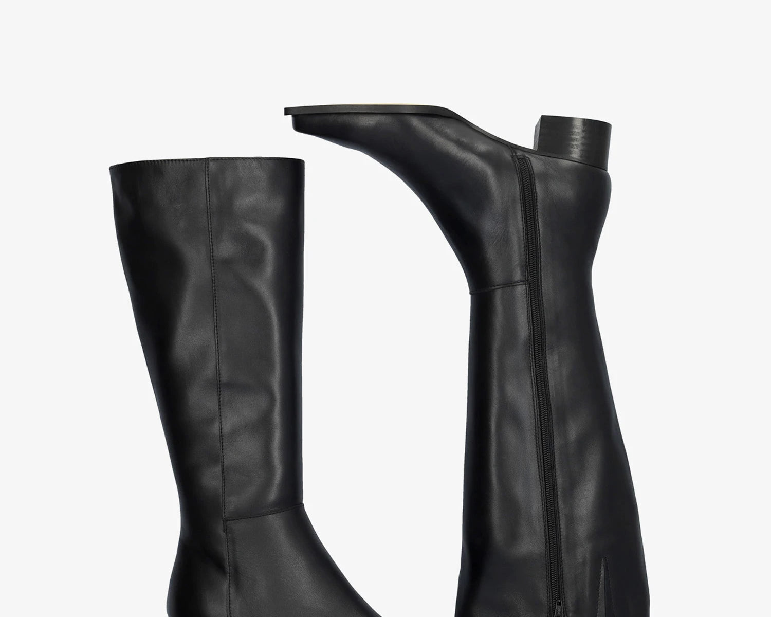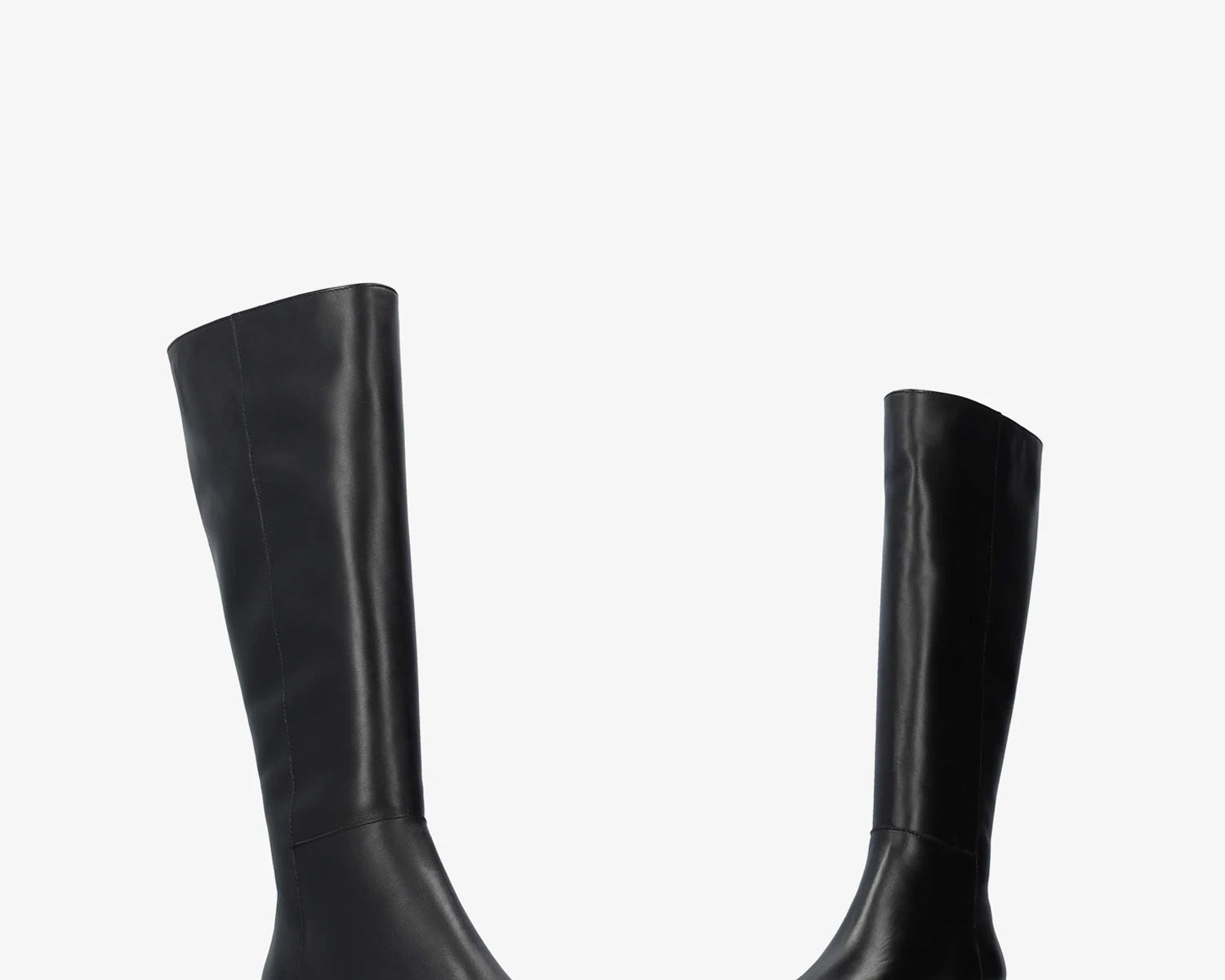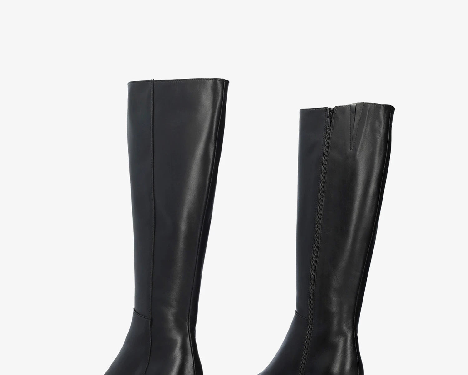 Bottes hautes en cuir avec bout carré. Design avec surpiqûres décoratives ton sur ton et fermeture zippée latérale. Talon de 3,5 cm pour les petites pointures (32 à 35) et de 4 cm pour les grandes pointures (42 à 45). Fabriquées en Espagne.