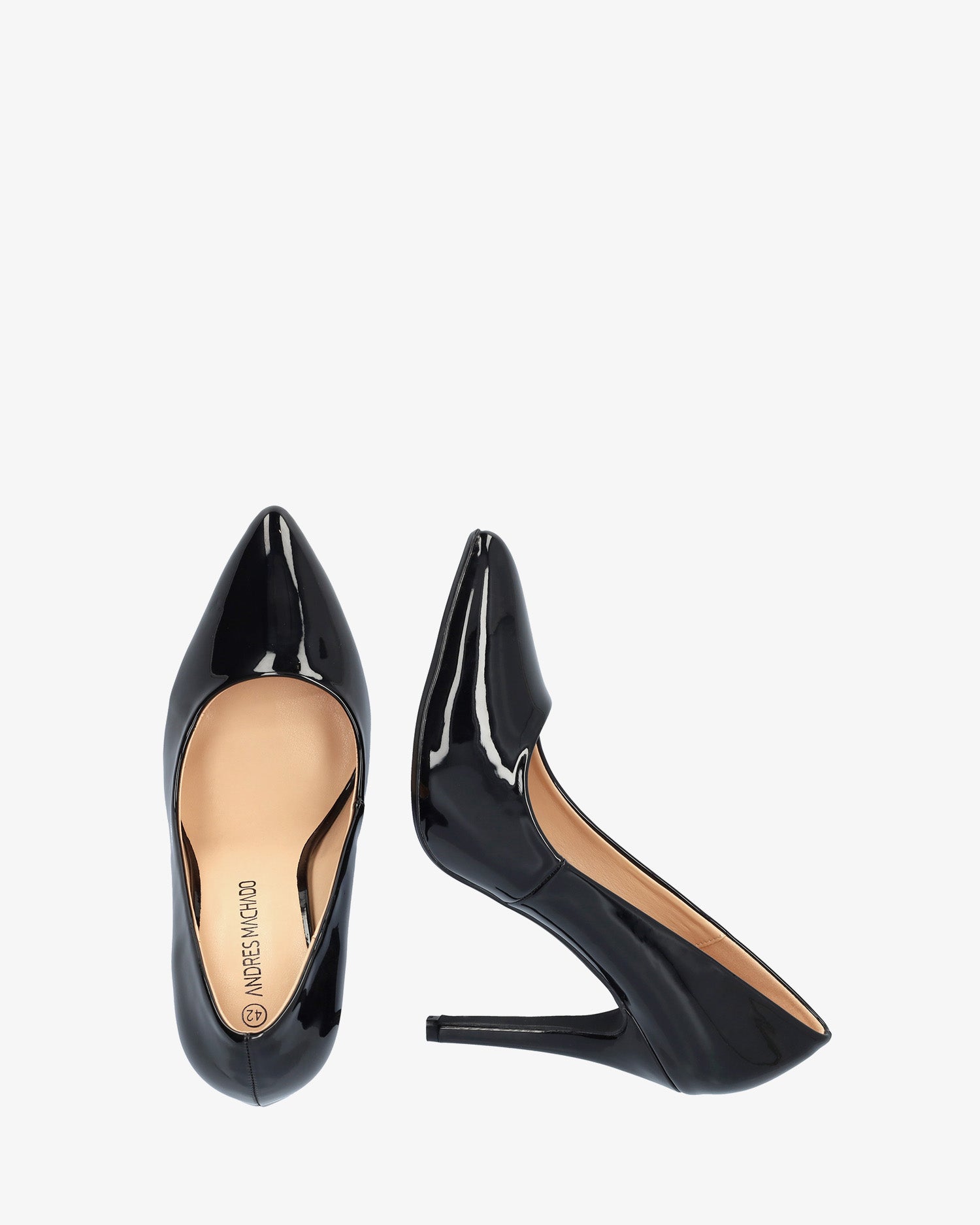 Escarpins à haut talon en simili cuir verni noir. Bout en pointe fine.Talon fin doublé du même ton d`une hauteur de 9 cm pour les petites pointures du 32 au 35. Talon d`une hauteur de 11 cm pour les grandes pointures du 43 au 46.