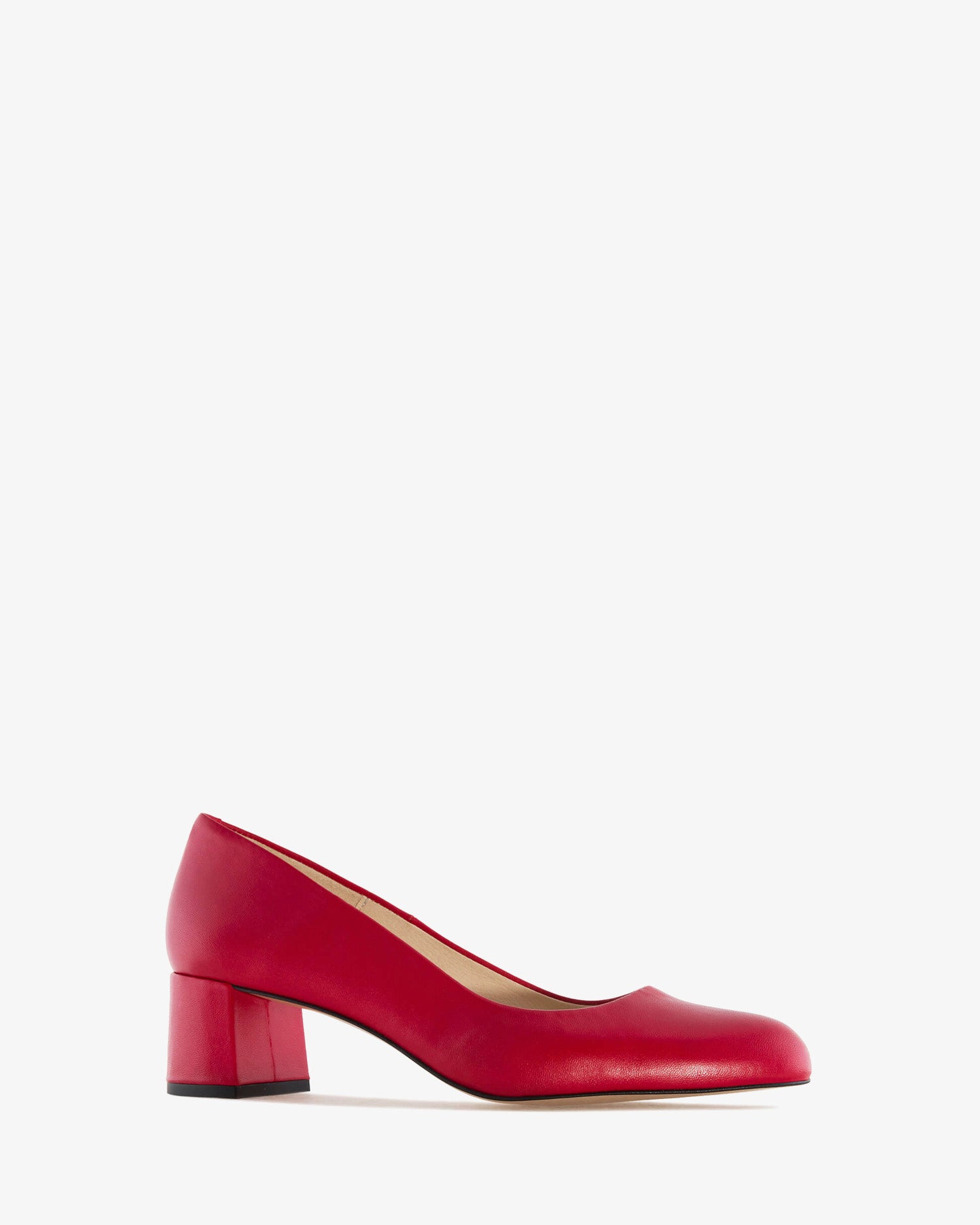 Escarpins en Cuir couleur Rouge. Doublure et semelle en cuir de couleur Beige. Talon large doublé en cuir de la même couleur de 4 cm pour les petites pointures du 32 au 35. Talon de 4,5 cm pour les pointures moyennes du 36 au 41. Talon de 5 cm pour les grandes pointures du 42 au 45. Fabrication Espagnole. Ce modèle mesure petit, nous vous conseillons de prendre une pointure en plus.