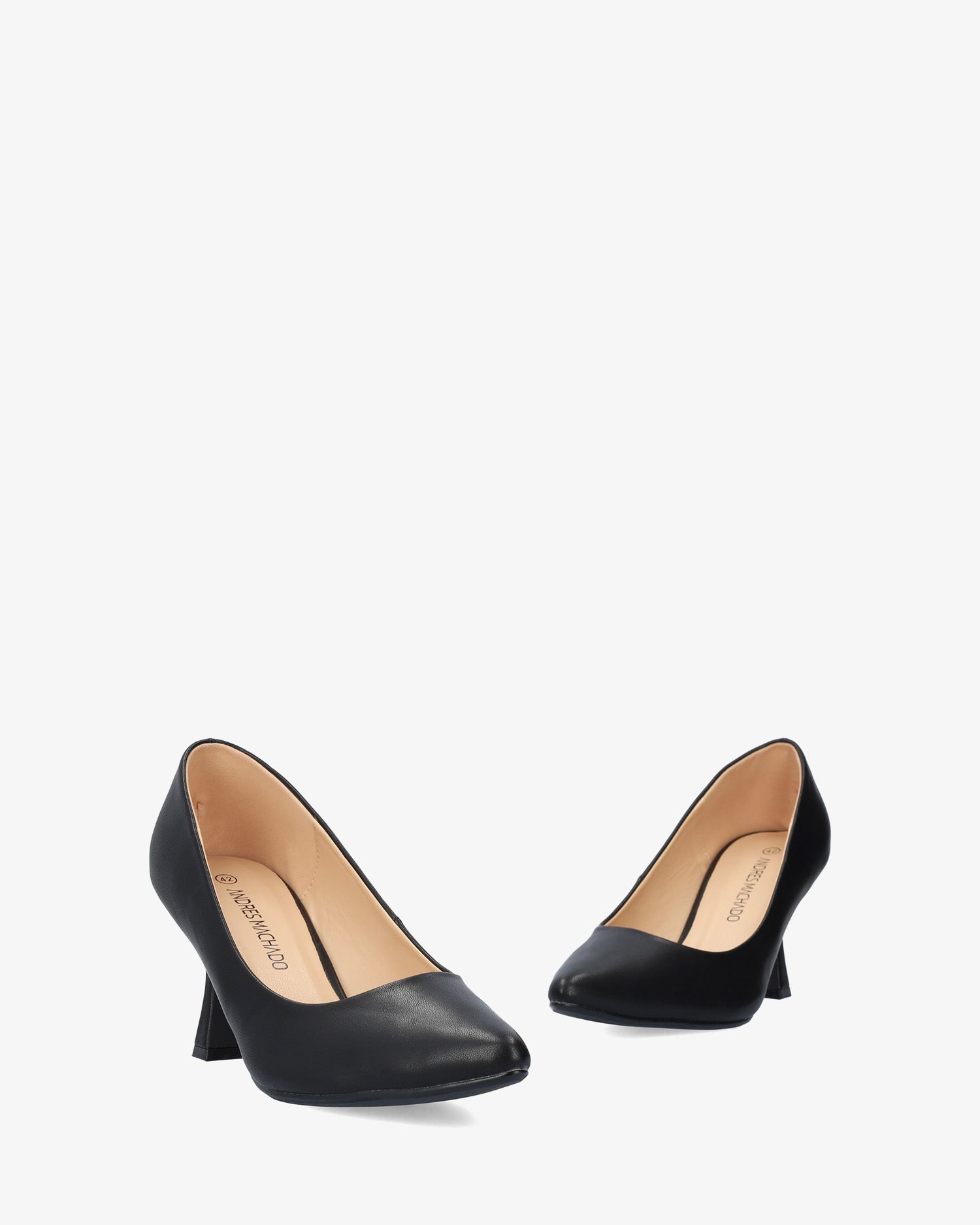 Escarpins en simili cuir noir. Bout avec pointe fine. Talon Kitten Heel de 7 cm de hauteur pour les petites pointures du 32 au 35 et de 8,5 cm de hauteur pour les grandes pointures du 42 au 45.
