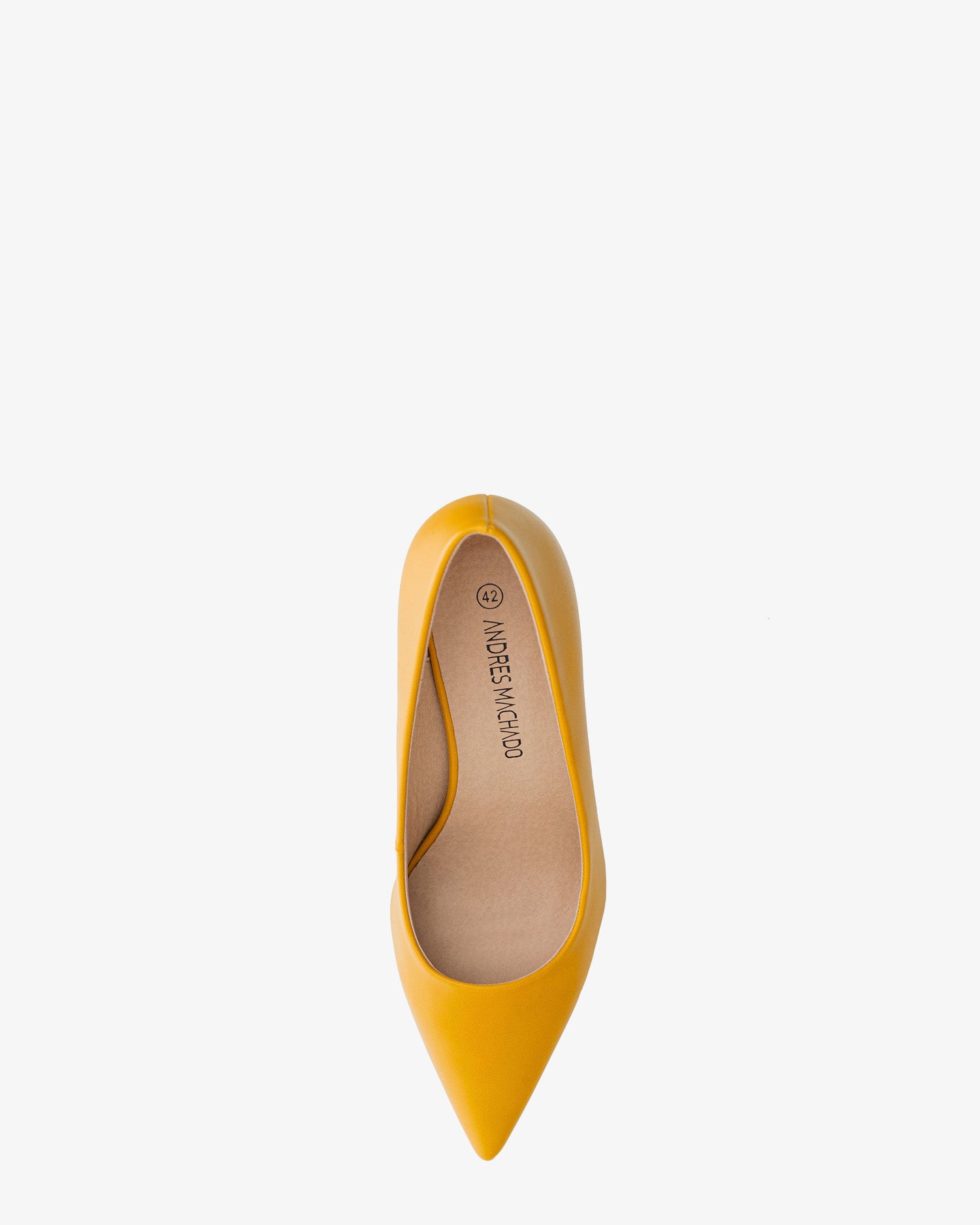 Escarpins en Soft de couleur Moutarde. Bout pointu et forme de largeur spéciale. Talons fins doublés au même ton de 8,5 cm pour les Petites Poinutres du 32 au 35. Talons fins de 11,5 cm pour les Grandes Pointures du 42 au 45.