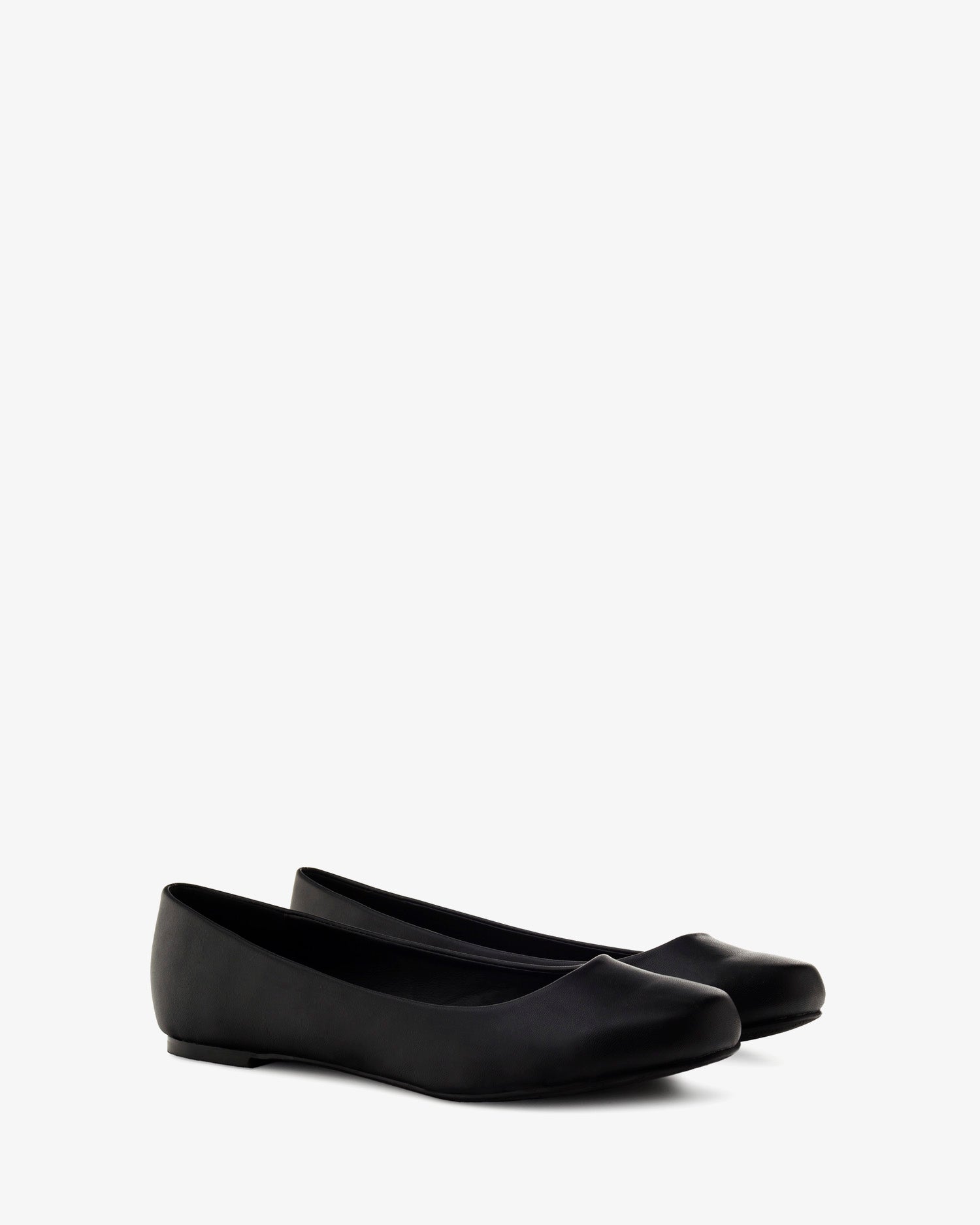 Ballerines classiques en Cuir souple Noir, bout large et carré. Mini talon de 0,5 cm. Grandes Pointures de la 42 à la 46. Ce modèle mesure grand, nous vous conseillons de prendre une pointure en moins.