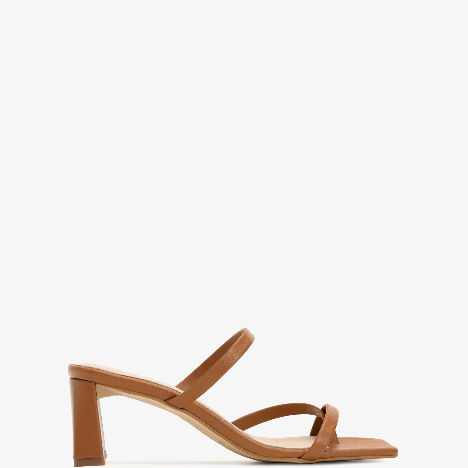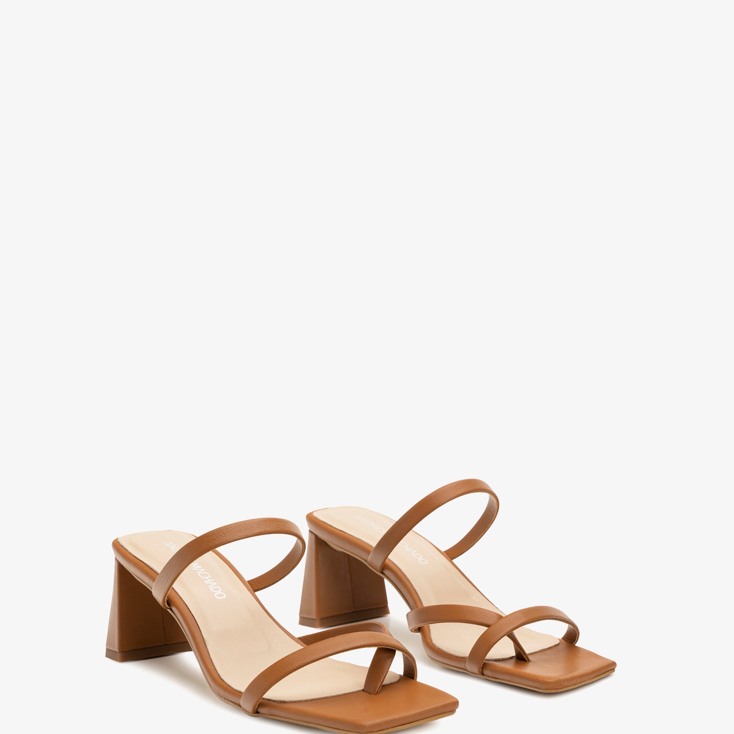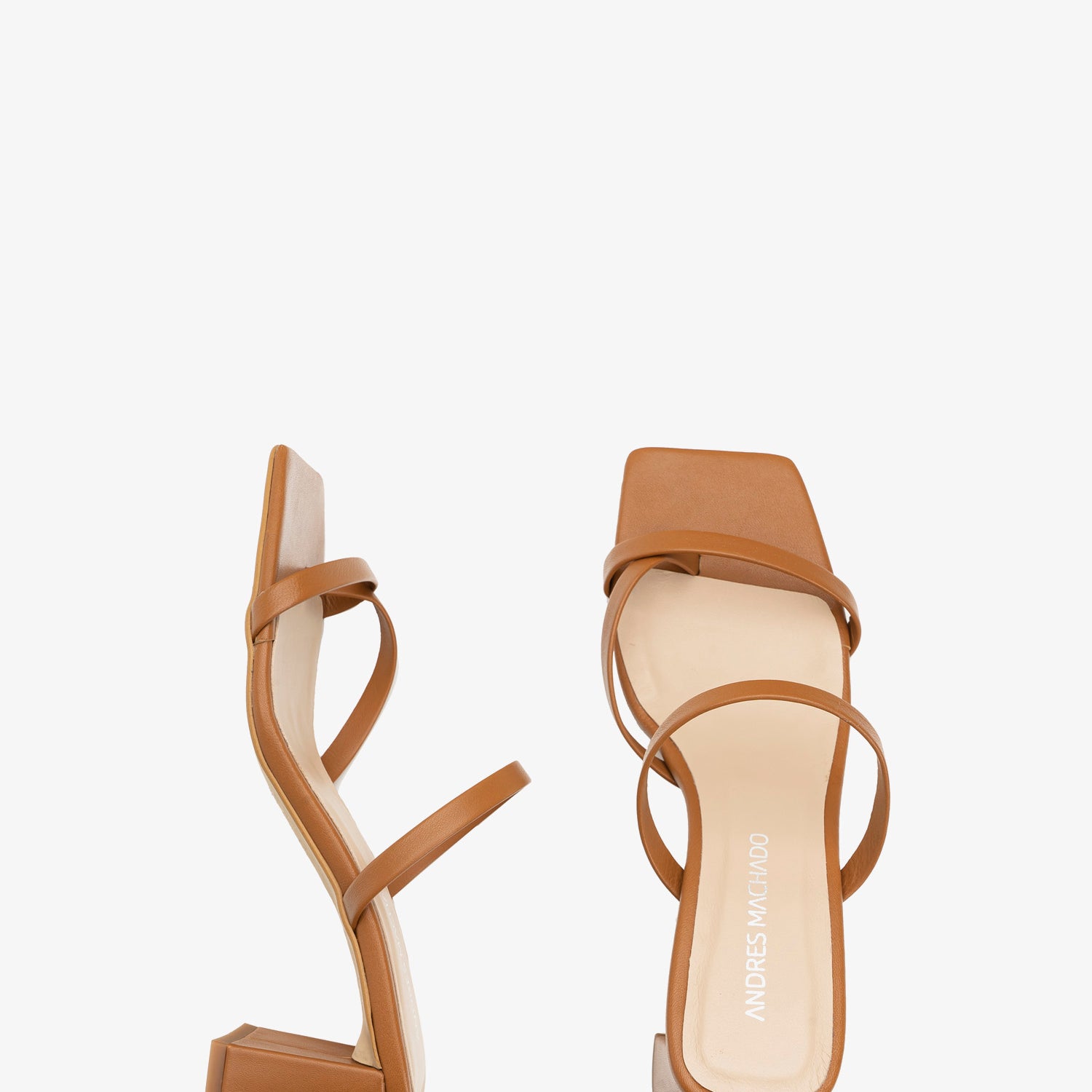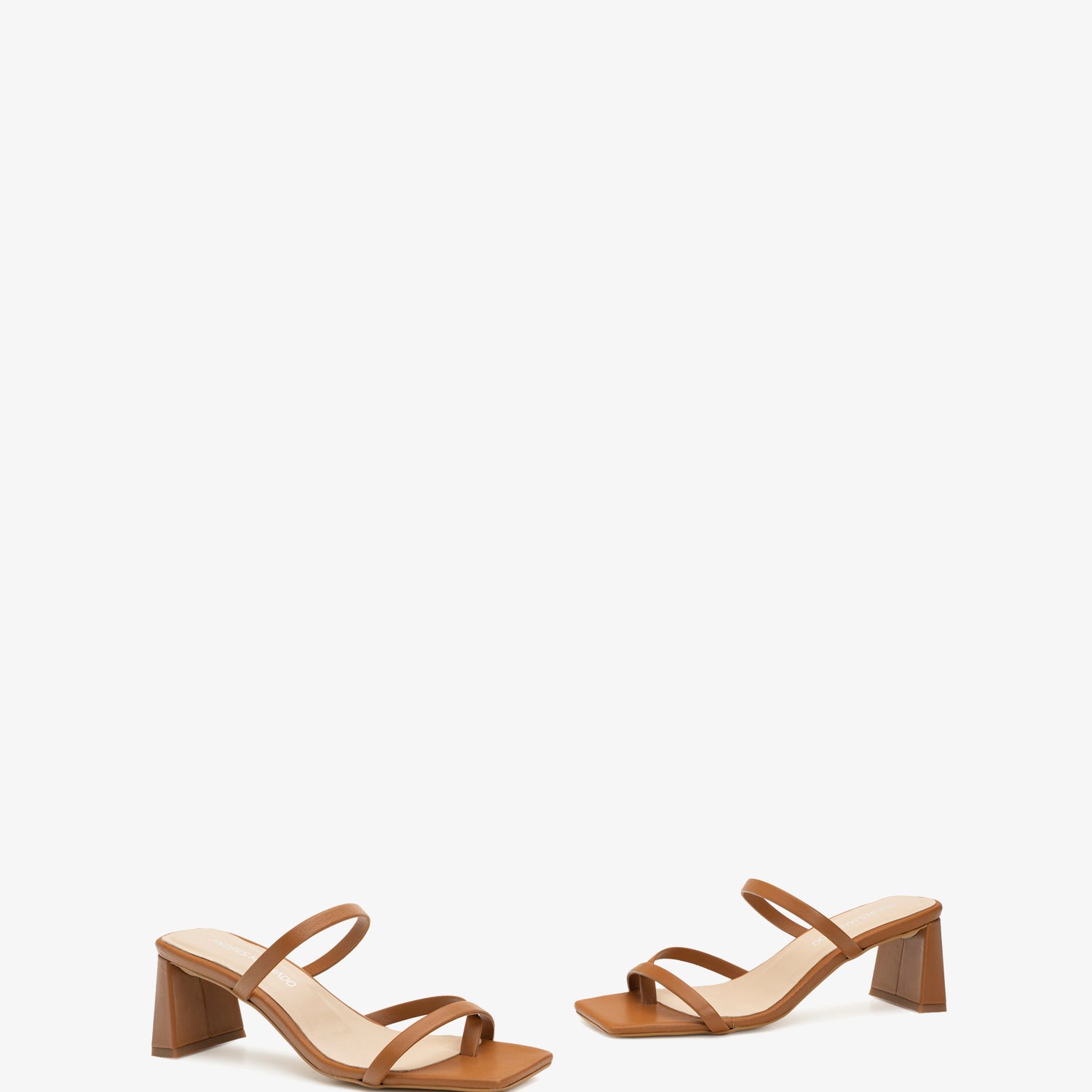 Mule en cuir de couleur marron. Design de 2 brides au même ton croisées sur le cou-de-pied et position pour le doigt. Bride autour de l´empeigne. Bout ouvert et carré. Talon carré en cuir Noir. Toutes les pointures disponibles du 32 au 45. Talon de 5,5 cm pour les pointures du 32 au 37. Talon de 6 cm cm pour les pointures du 38 au 45. Fabriquées en Espagne.