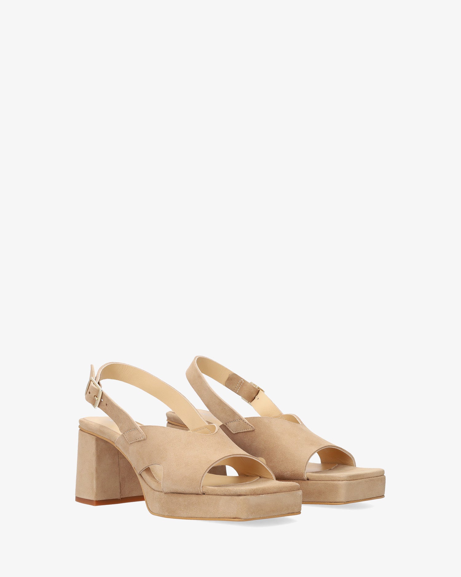 Sandale en daim camel avec plateforme et talon
