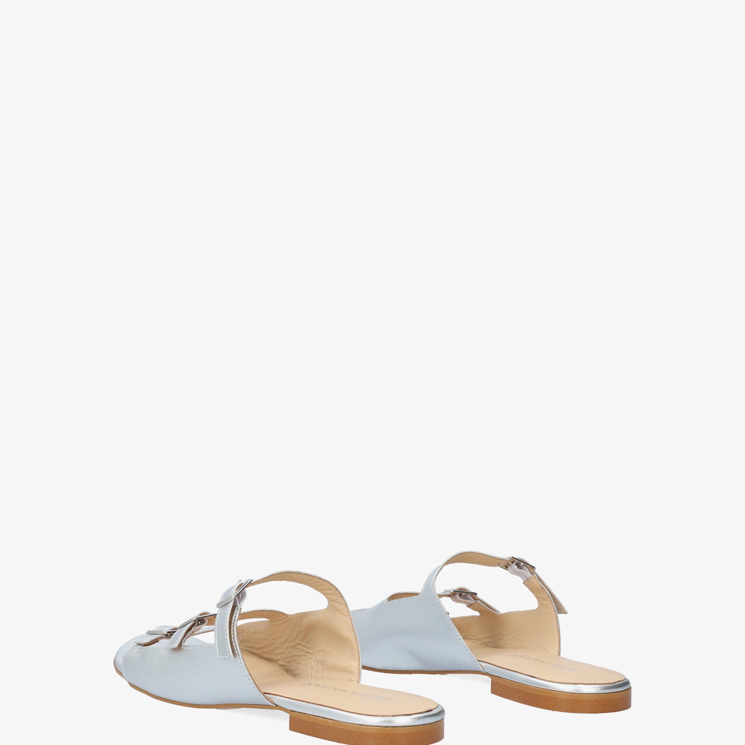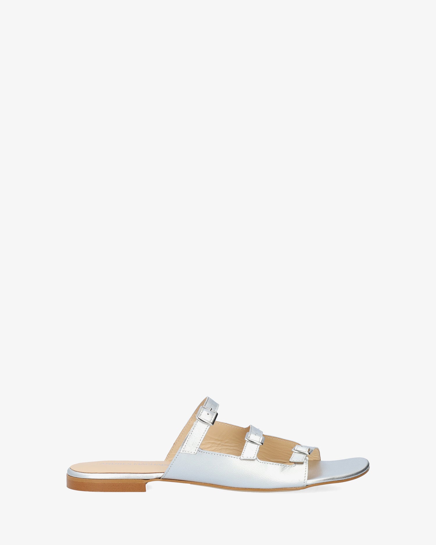 Sandale plate argentée en cuir