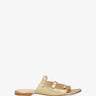 Sandales plates en cuir couleur Dorée. Modèle à bout ouvert et arrondi avec trois brides fines sur l`avant et le cou-de-pied. Fermeture à boucle métallique sur le côté. Talon de 2cm pour les pointures du 32 au 35. Talon de 2cm pour les pointures du 36 au 41. Talon de 2cm pour les pointures du 42 au 45. Fabriquée en Espagne