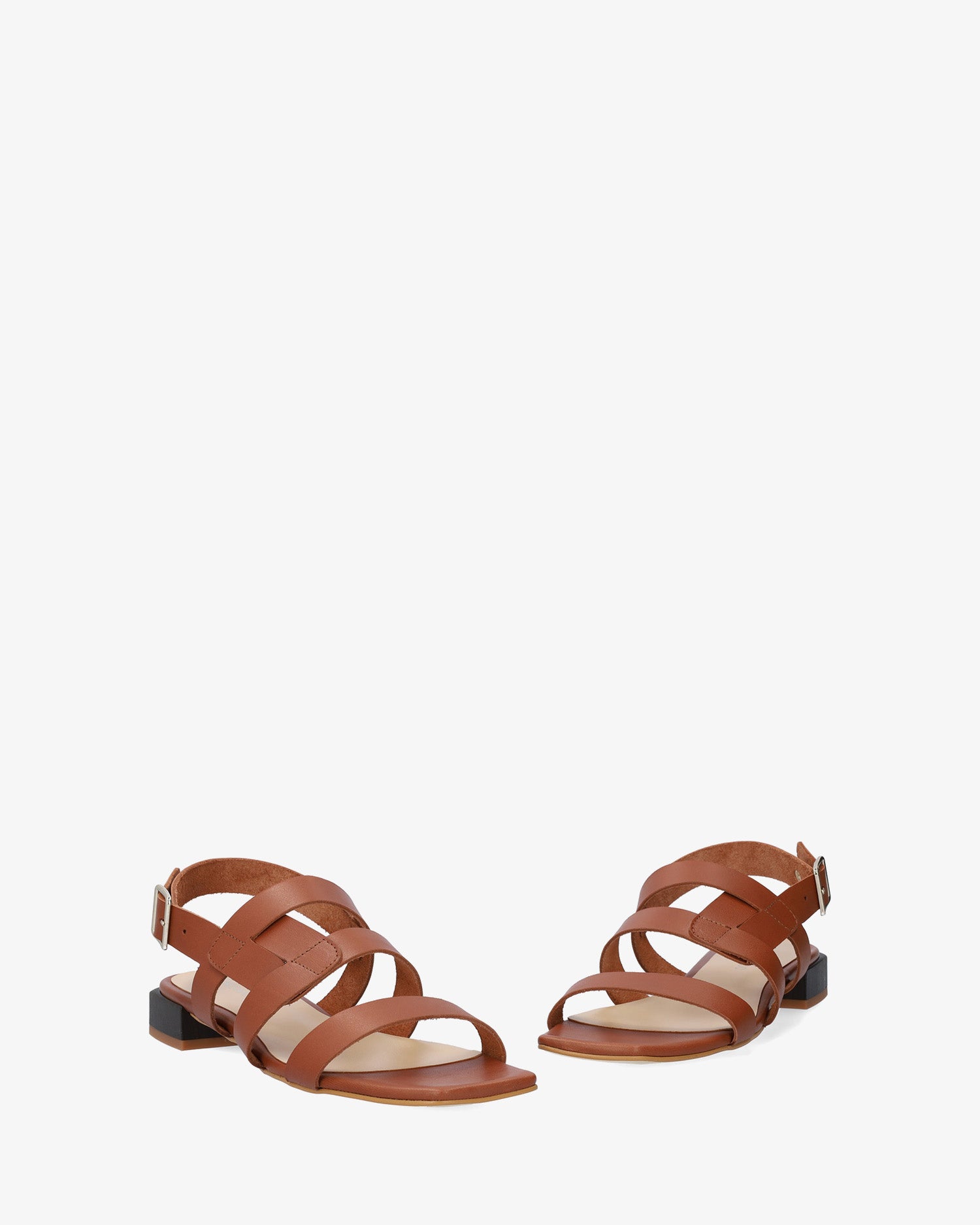 Sandales plates en cuir couleur Marron. Modèle à bout ouvert et carré avec une bride fine à l`avant et deux brides parallèles entrelacées sur le cou-de-pied. Fermeture à boucle métallique. Talon bloc effet bois de 2,5cm pour les pointures du 32 au 35. Talon de 2,5cm pour les pointures du 36 au 41. Talon de 3cm pour les pointures du 42 au 45. Fabriquée en Espagne