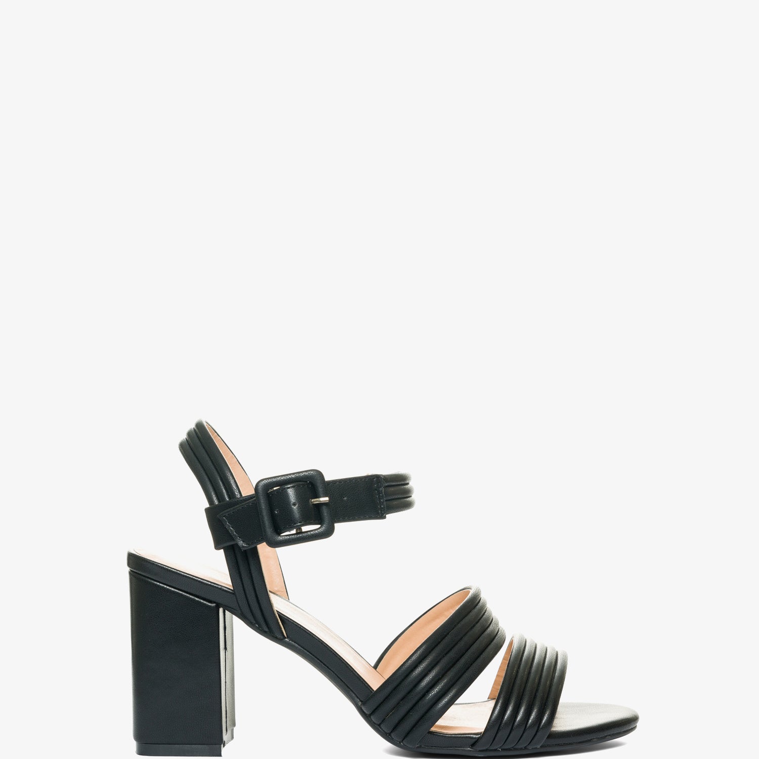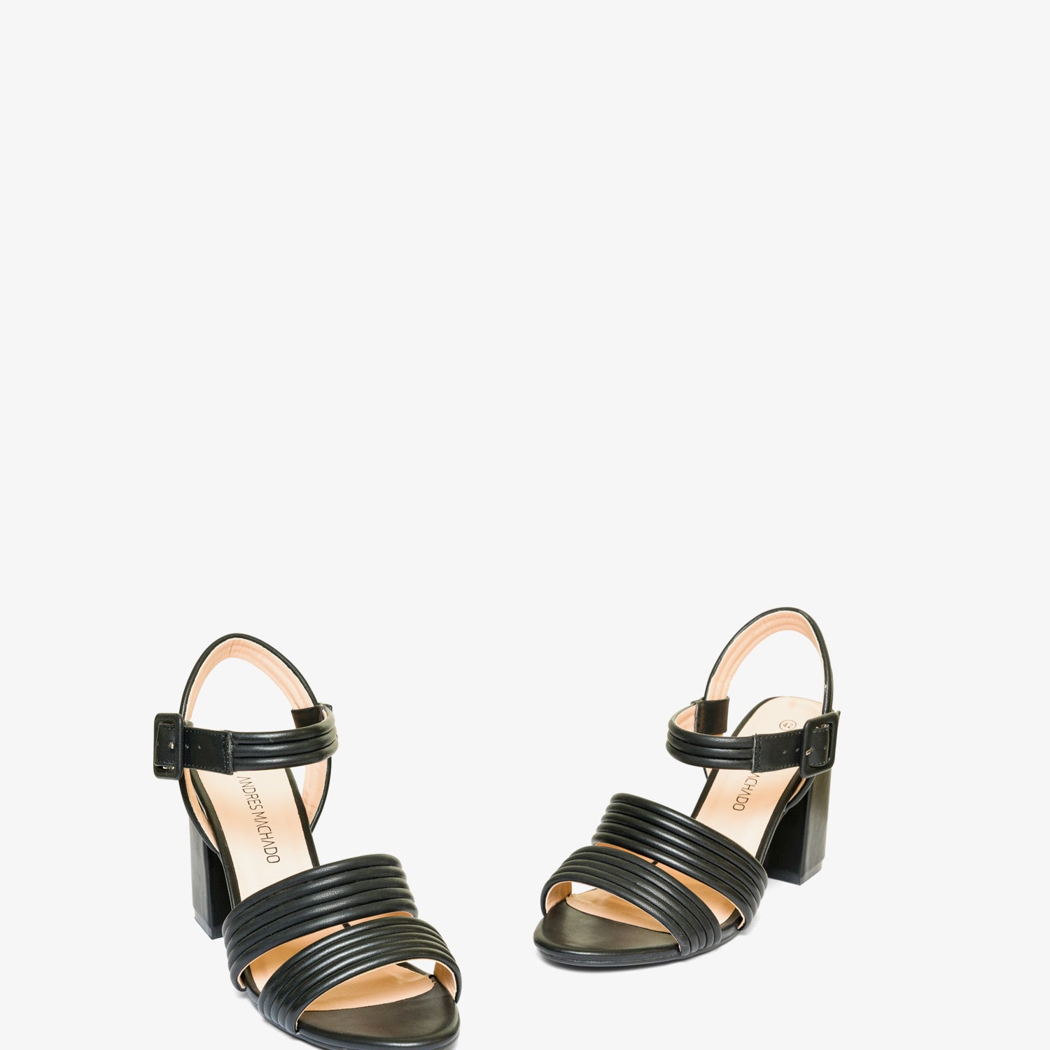 Sandale à talon haut carré de couleur Noir en simili cuir. Double bride tubulaire et parallèle sur le cou-de-pied du même ton. Fermeture avec bretelles tubulaires et boucle métallique autour de la cheville. Contrefort ouvert. Talon de 8 cm pour les pointures du 32 au 35. Talon de 9 cm pour les pointures du 42 au 45. Coupe étroite. Nous conseillons de prendre une pointure au-dessus si vous avez un pied large ou si vous êtes entre deux pointures.