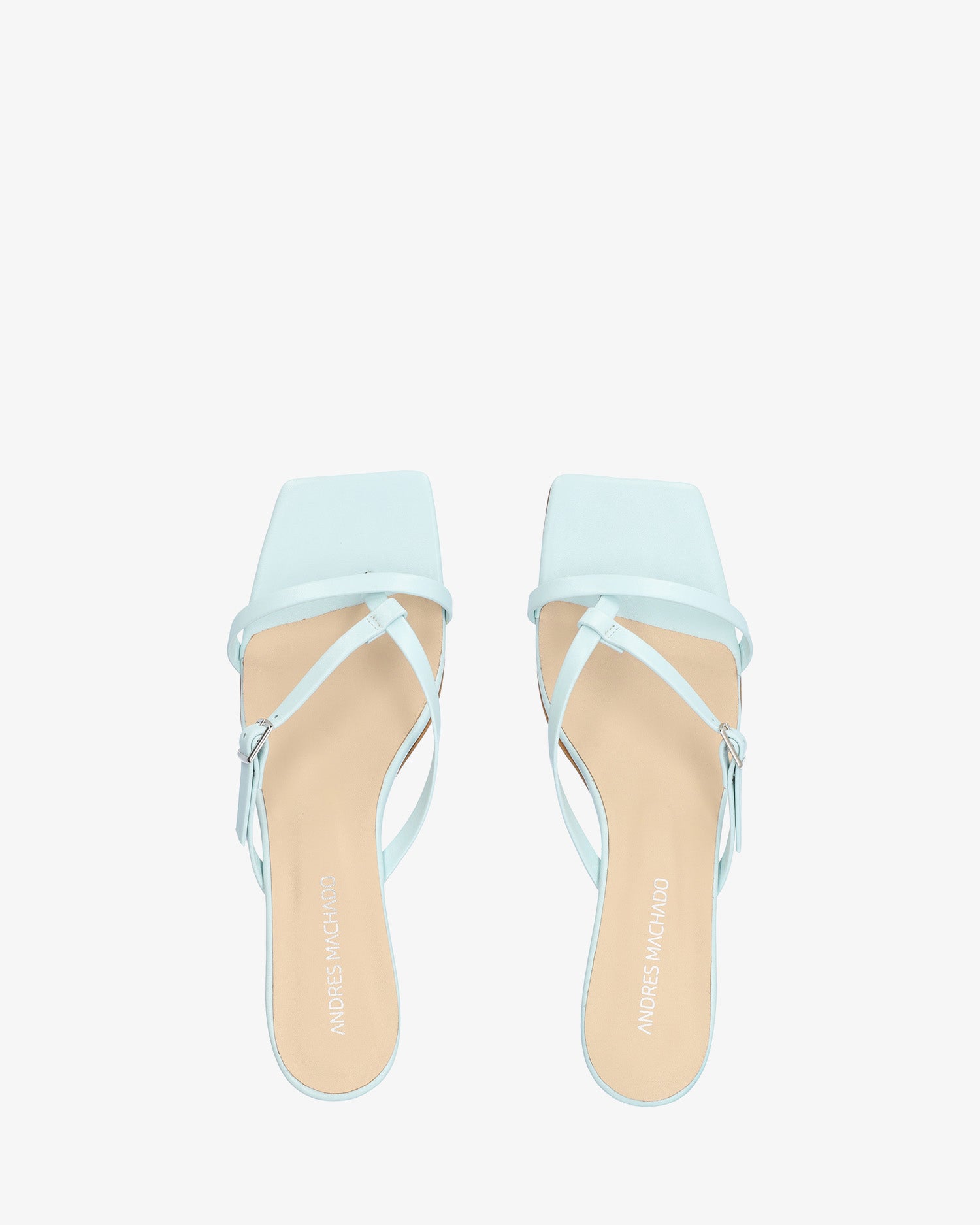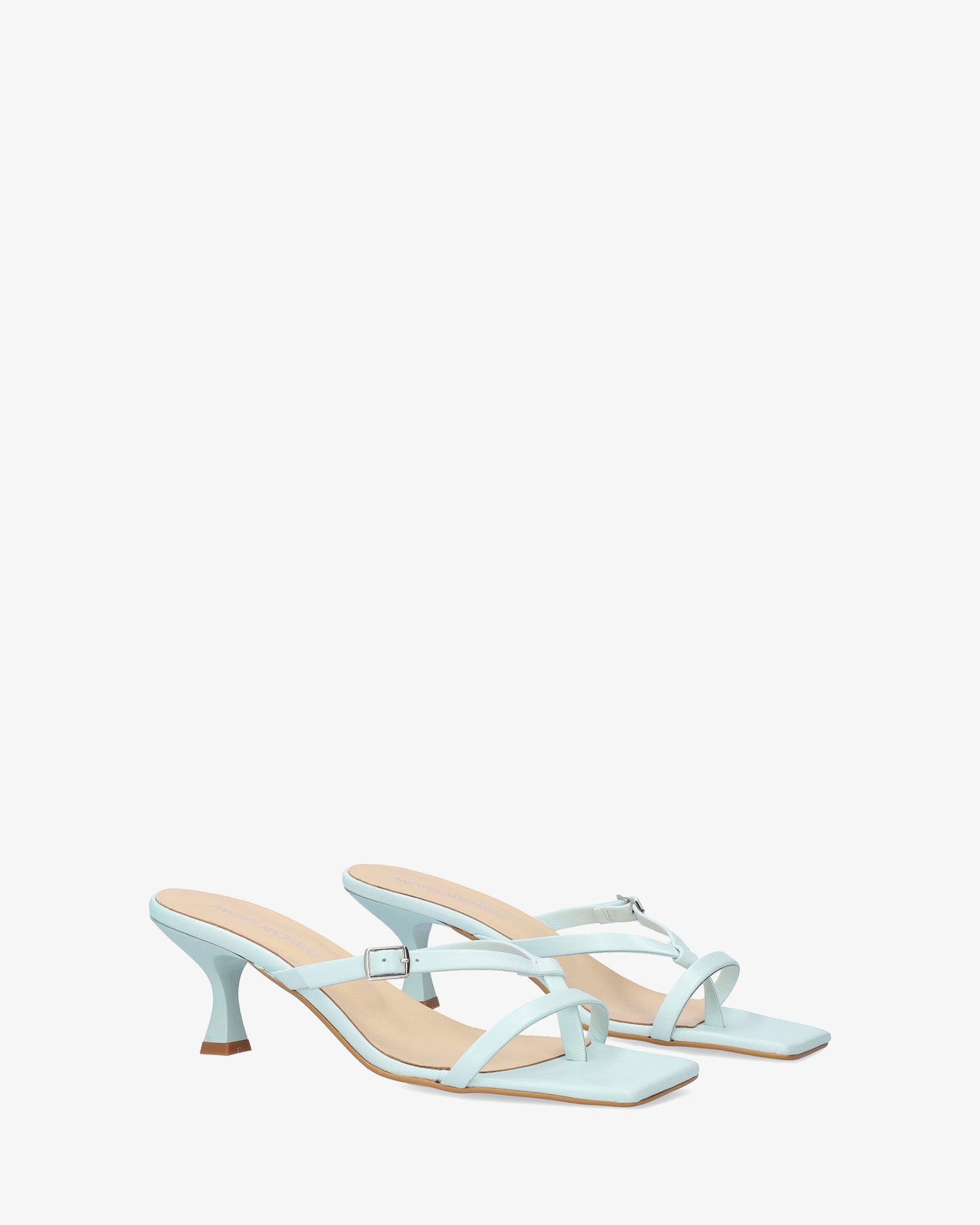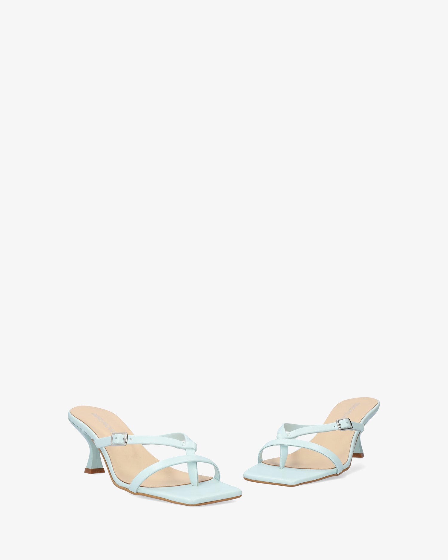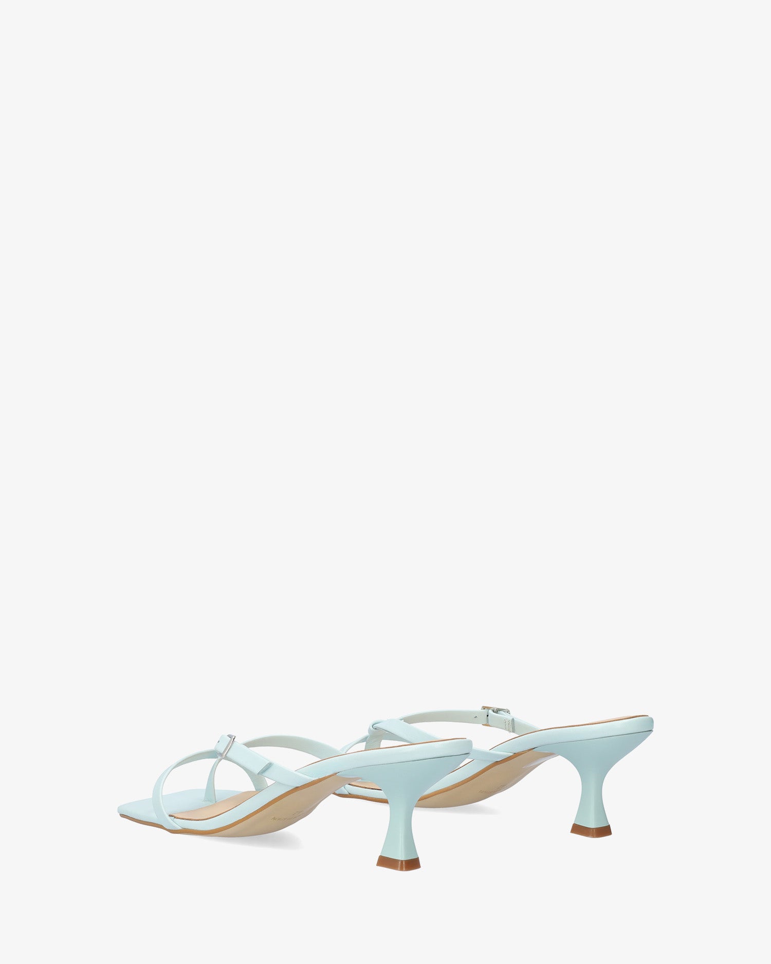 Sandales-tong avec talon Kitten Heel couleur bleue en cuir. Modèle à bout carré avec brides fines à l`avant et sur le cou-de-pied en forme de V inversé du même ton. Fermeture avec boucle métallique sur l`une des brides. Talon de 7cm pour les pointures du 32 au 35. Talon de 7,5cm pour les pointures du 42 au 45. Fabriquée en Espagne