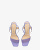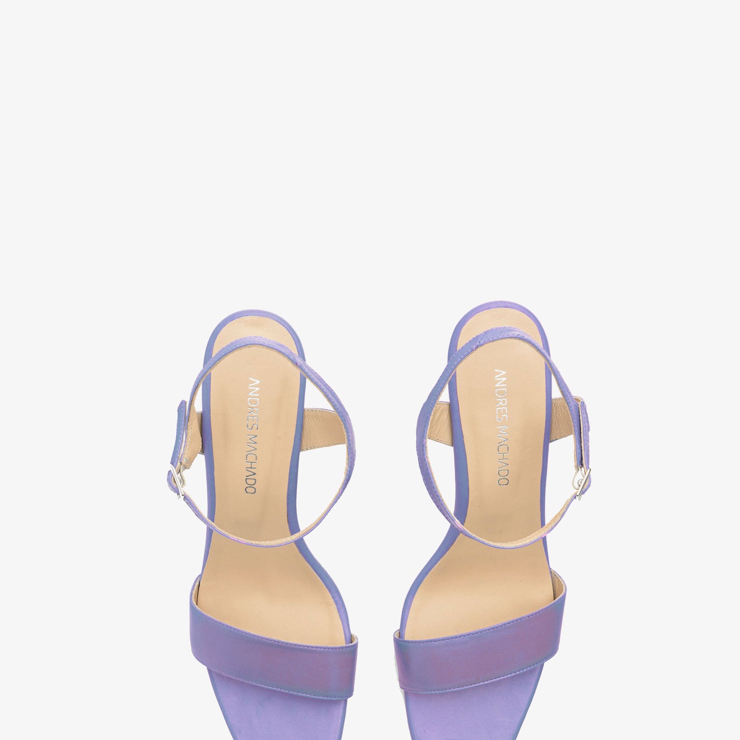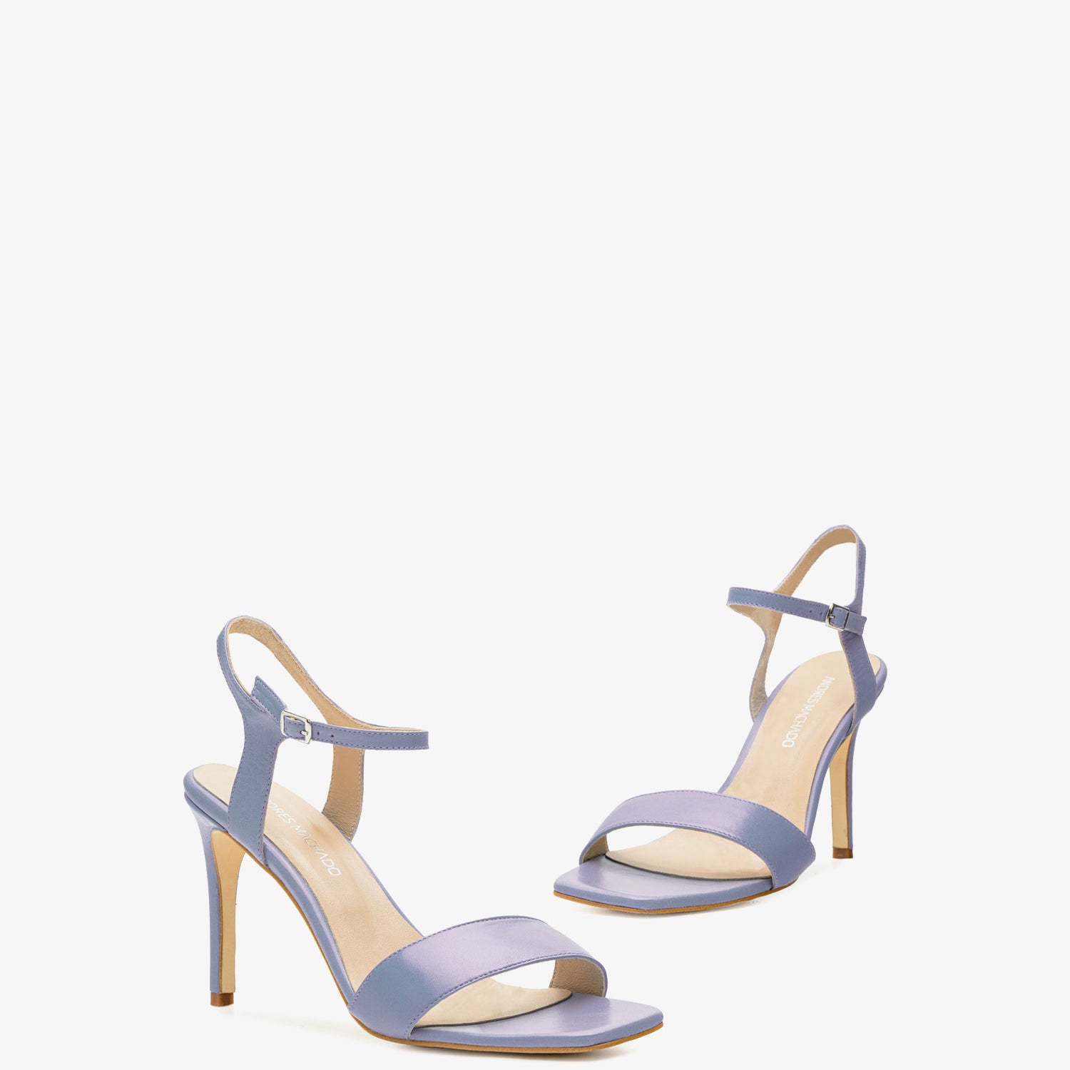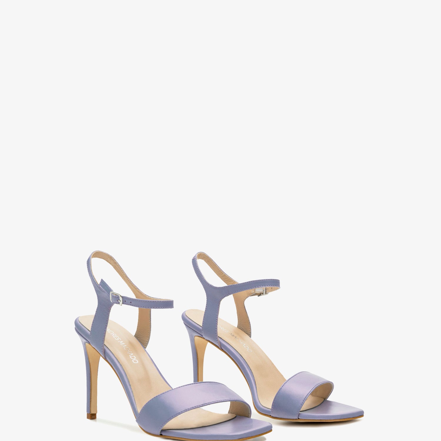 Sandales en cuir de couleur Lilas. Bride large au même ton au-devant. Fermeture para bride à boucle sur la cheville. Doublure en cuir. Talons fins au même ton de 9 cm de haut pour les petites pointures du 32 au 35. Talons de 10 cm pour les grandes pointures du 42 au 45. Fabrication espagnole.