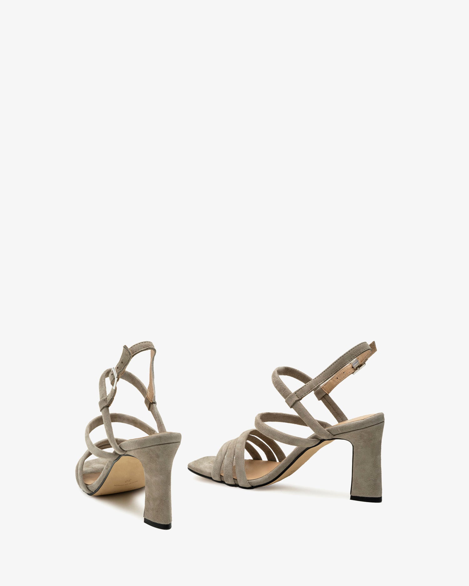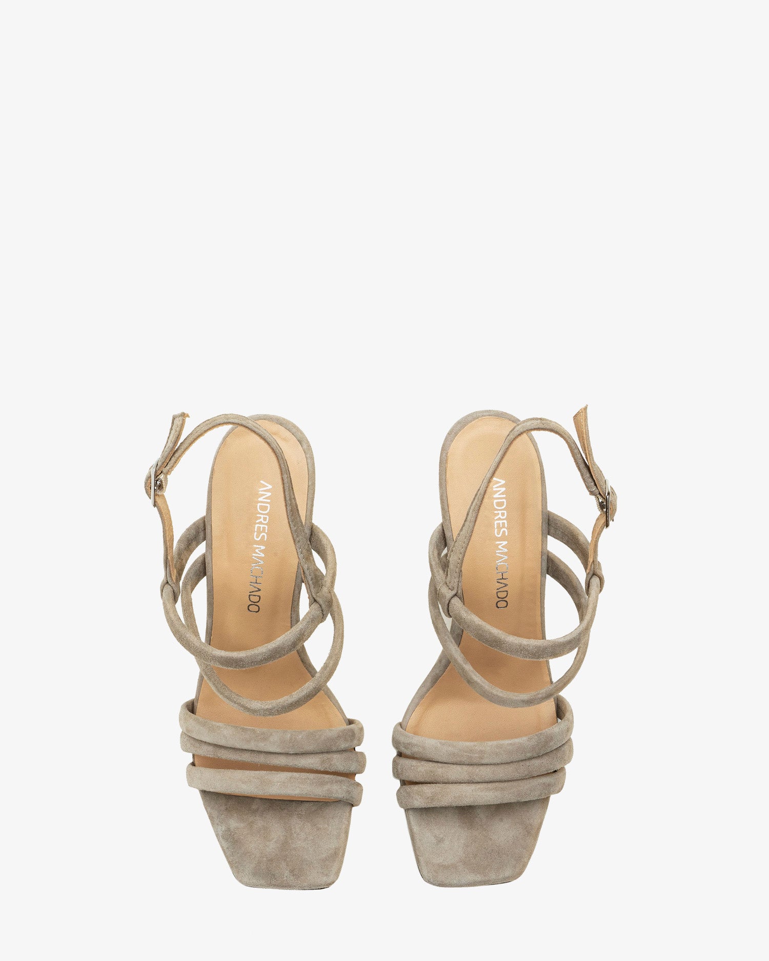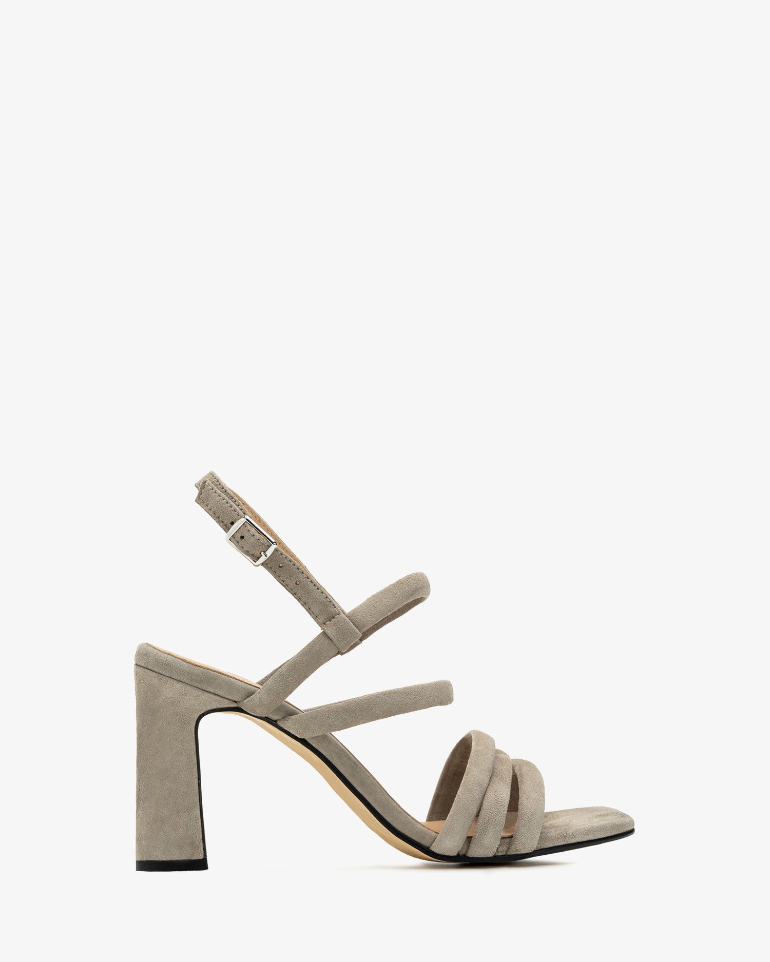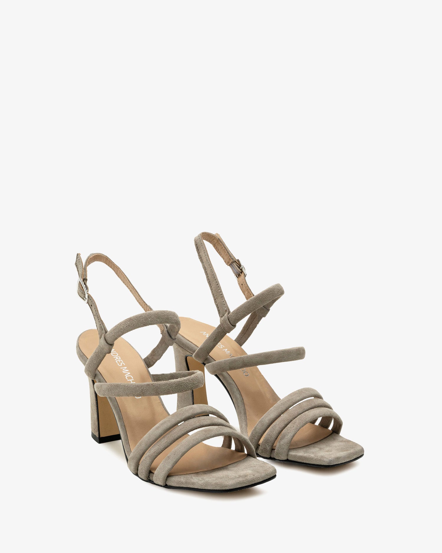 Sandales en daim de couleur gris. Brides tubulaires au même ton sur la partie de devant et sur l´empeigne. Bout ouvert et carré. Fermeture para bride à boucle sur la cheville. Semelle intérieure en cuir. Talons larges revêtus en daim de couleur gris de 8 cm pour les petites pointures du 32 au 35. Talons larges revêtus en daim de couleur gris de 9 cm pour les grandes pointures du 42 au 45. Fabrication espagnole.