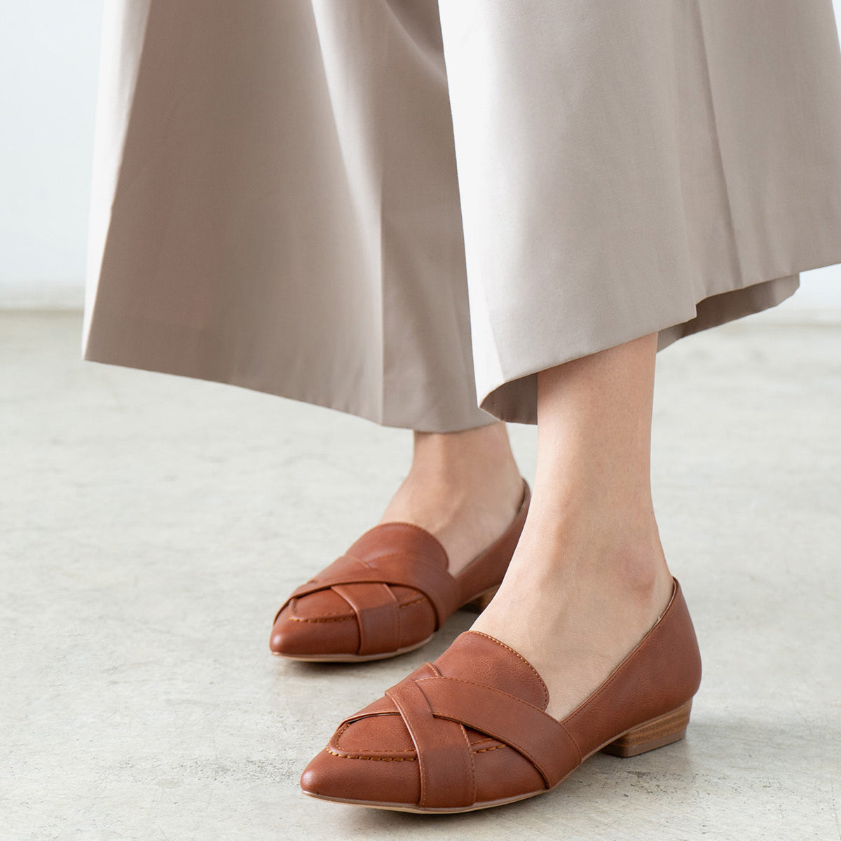 Balerinki cienki czubek soft brązowe