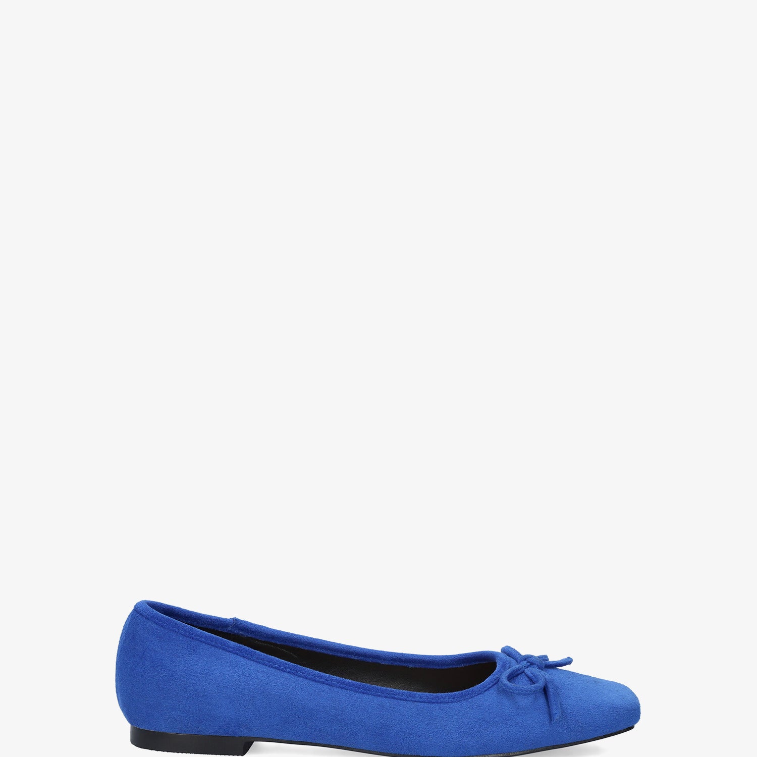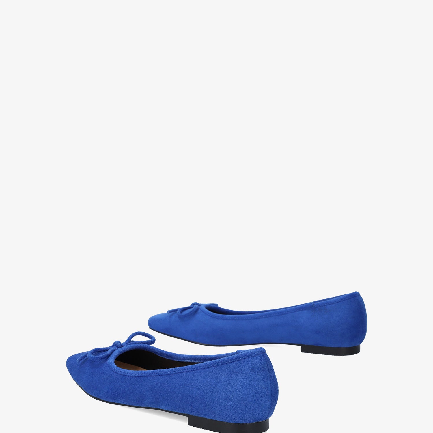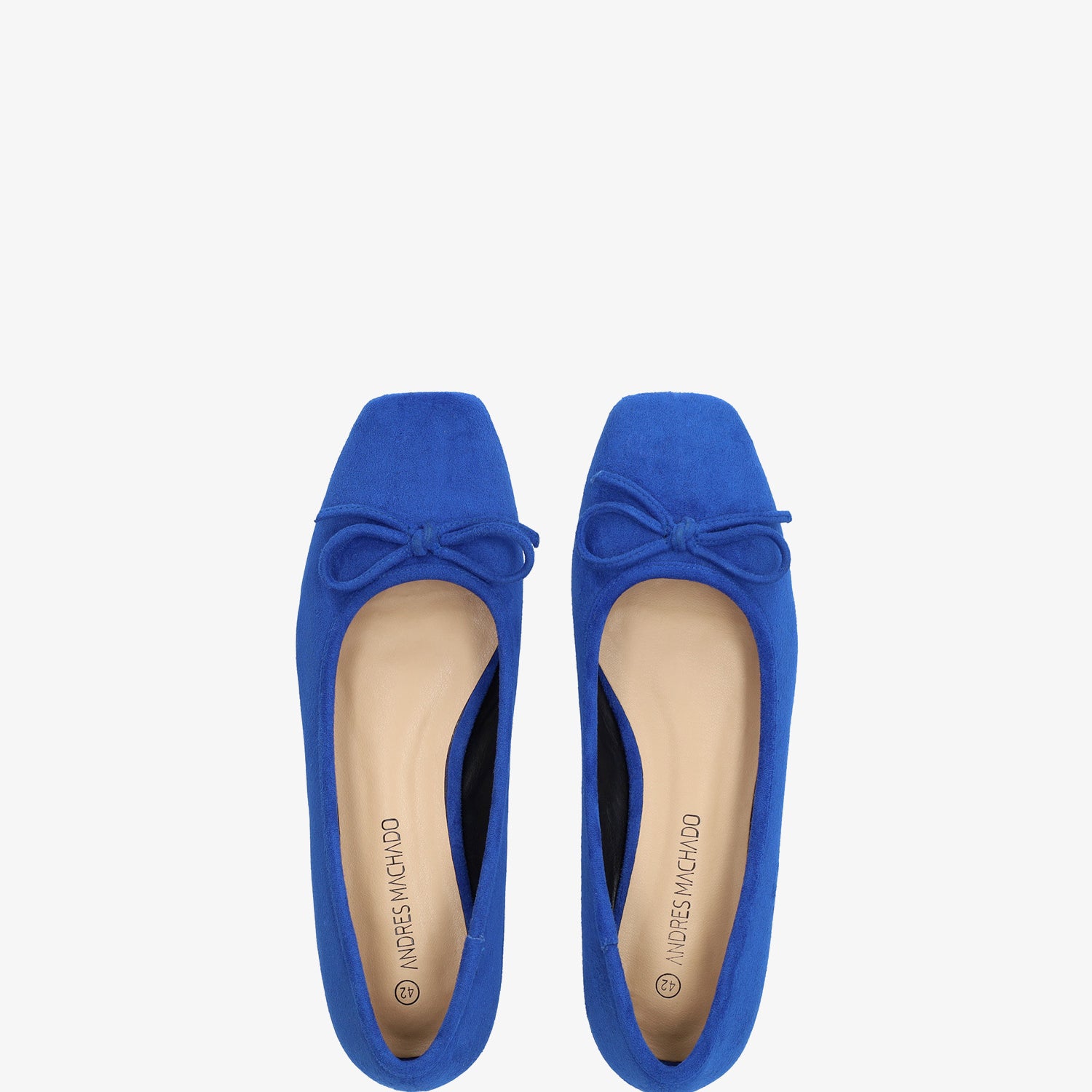 Niebieskie baleriny wykonane ze skóry zamszowej. Fason z kwadratowym noskiem i pasującą kokardką na palcach. Ozdobne przeszycia z dopasowaną nicią na górnej krawędzi buta. Szeroki obcas dla dużych rozmiarów od 42 do 45.
