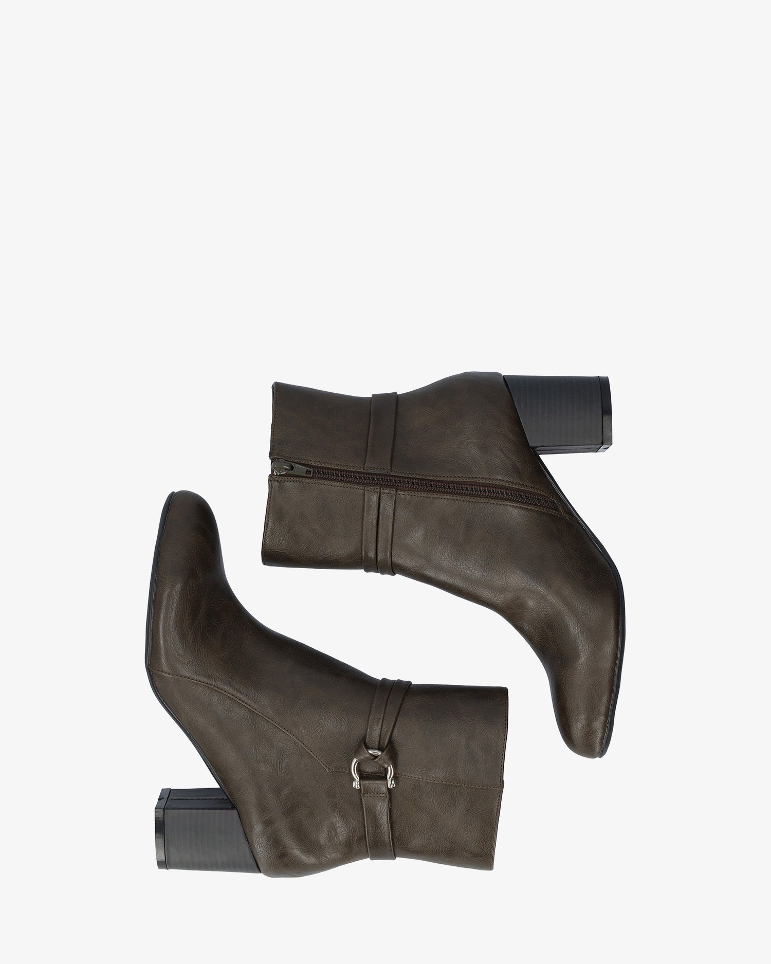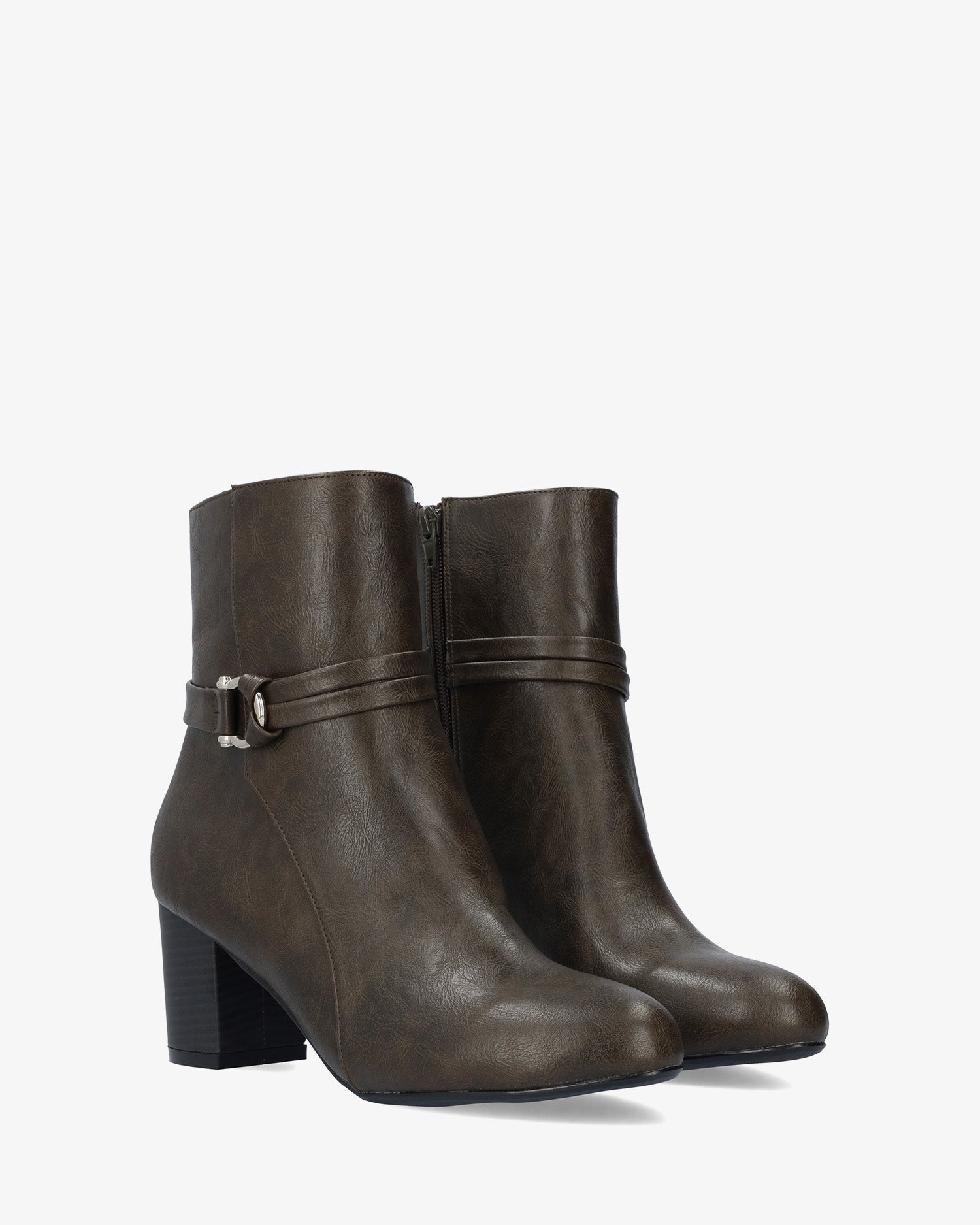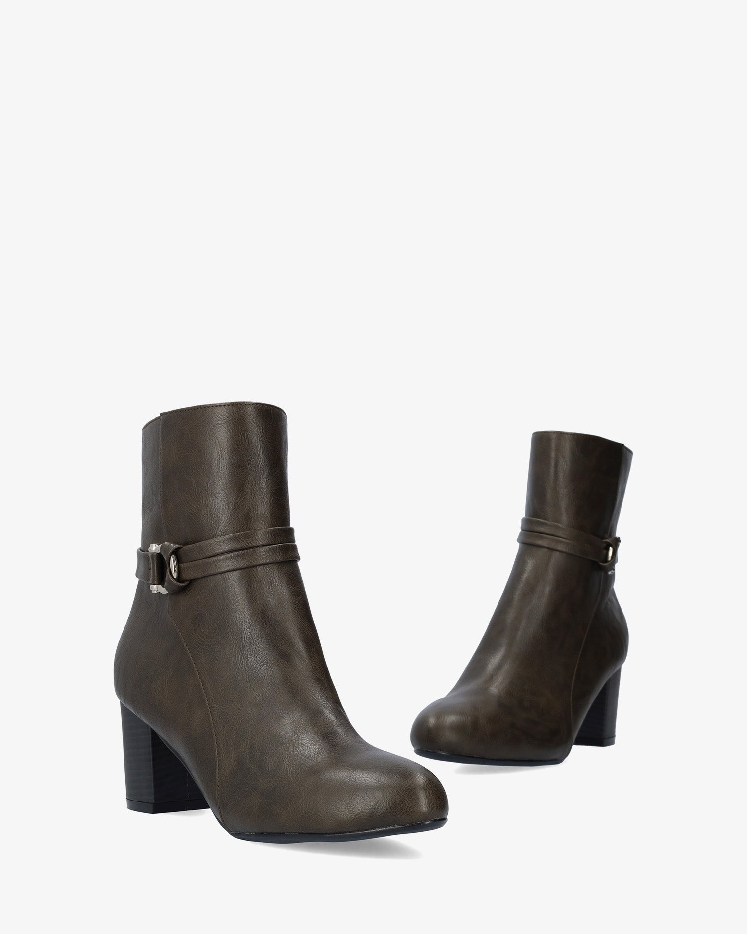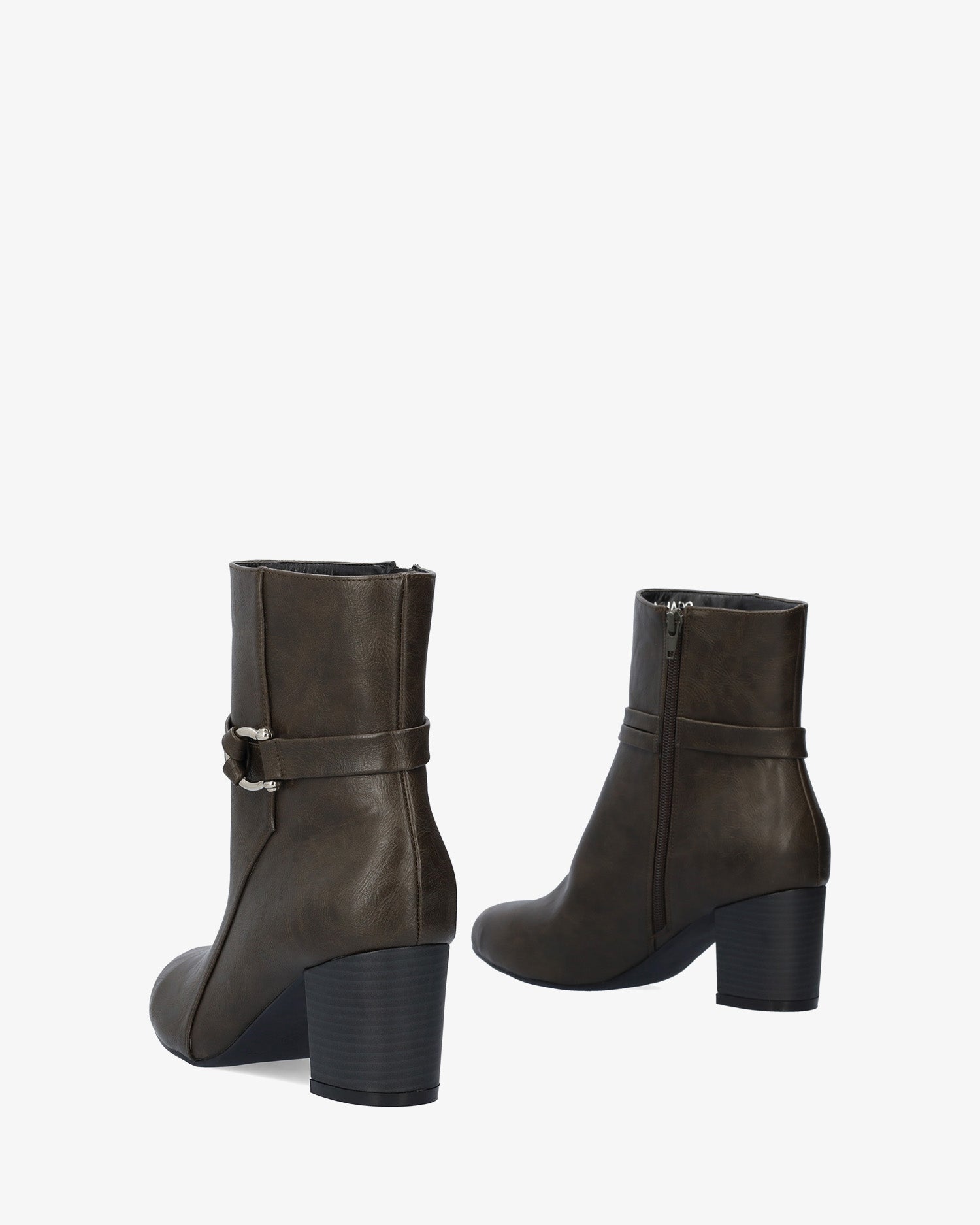Miękki szary botek z pasującym wewnętrznym zamkiem błyskawicznym. Ozdobne przeszycia i pasujący miękki pasek na kostkę ze srebrną klamrą po zewnętrznej stronie. Wykończone migdałowym noskiem. Szeroki, wyściełany drewnem obcas o wysokości 5,2 cm pasuje do małych rozmiarów od 32 do 35. Obcas o wysokości 7,5 cm pasuje do dużych rozmiarów od 42 do 45.