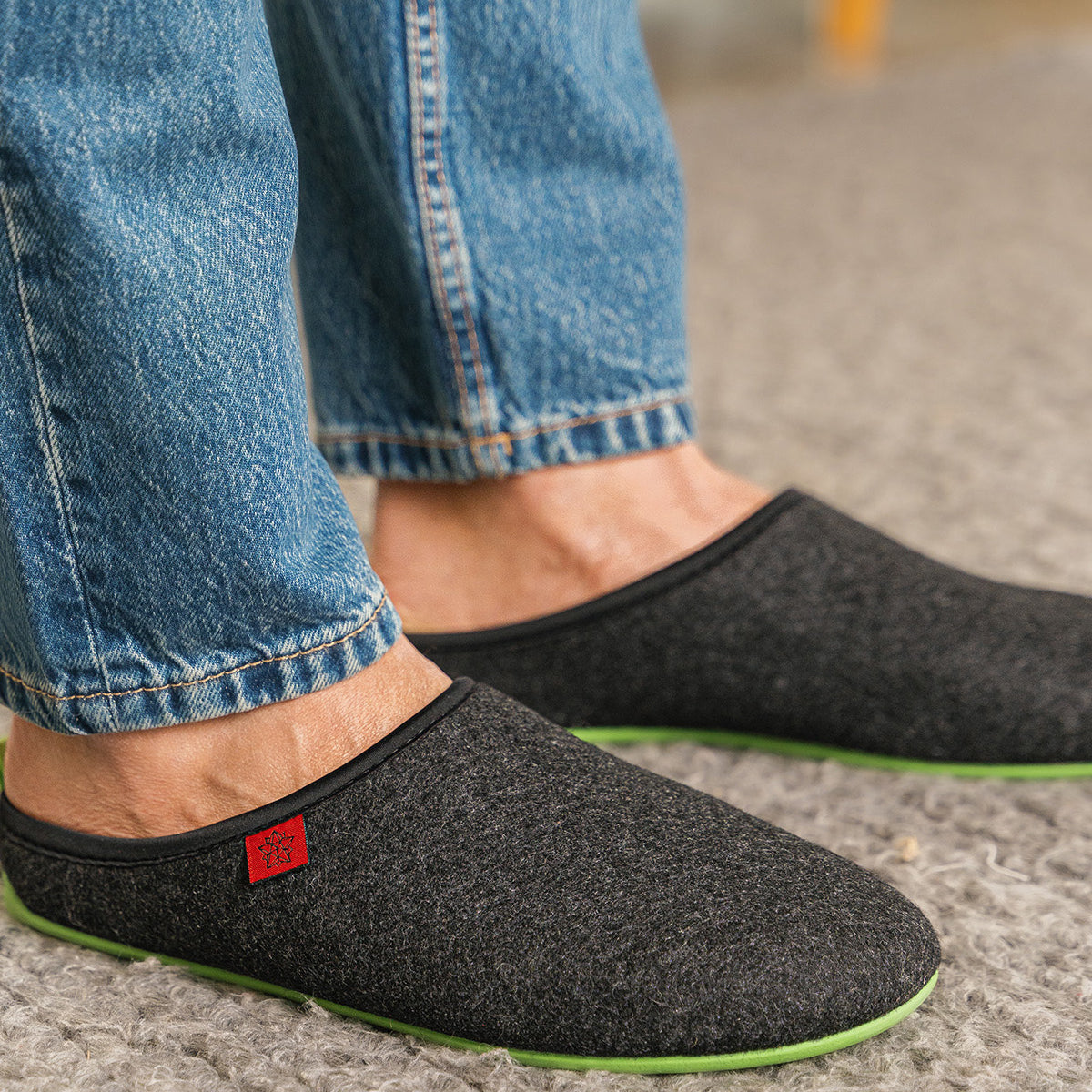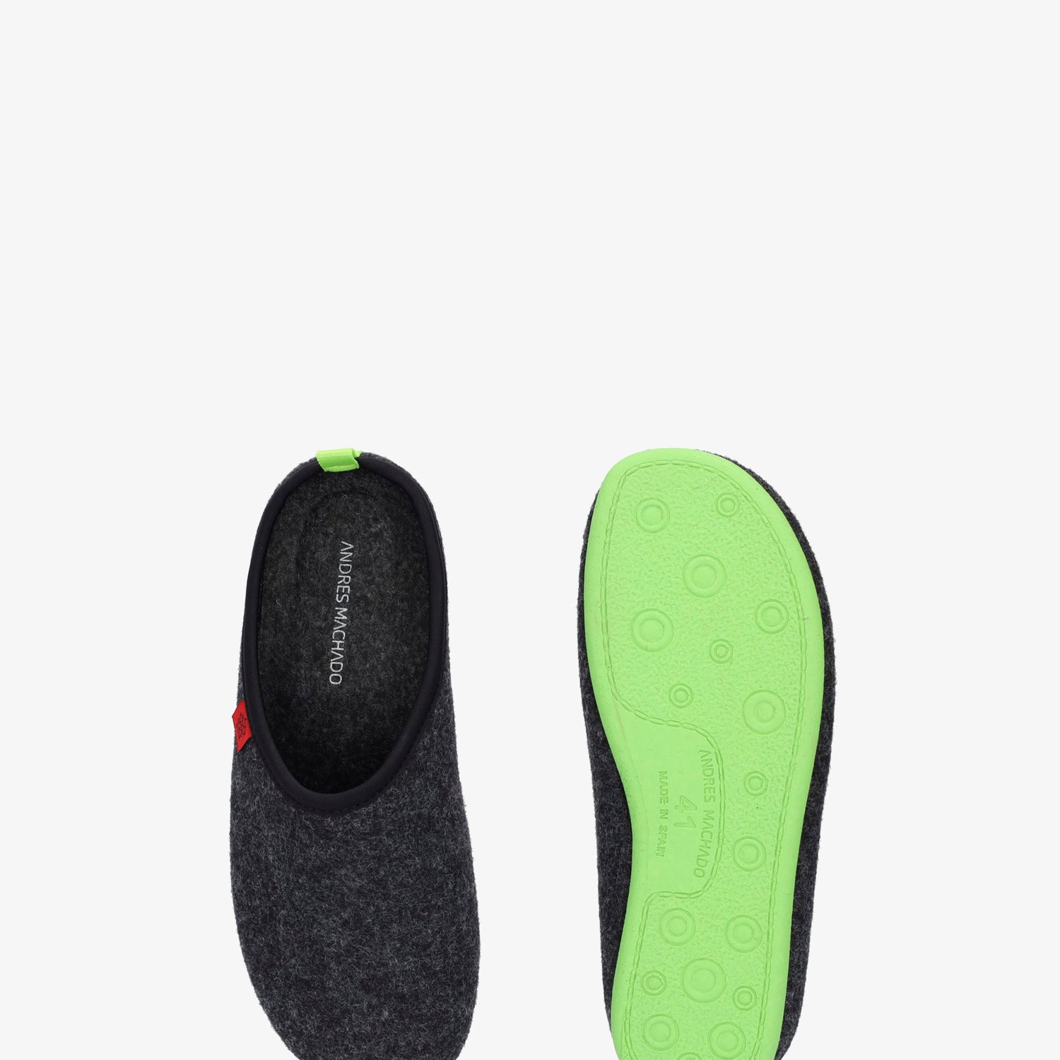 Komfort, styl i jakość to przymiotniki najlepiej definiujące nasz model DYNAMIC. Kapcie wykonane z najwyższej jakości czarnego filcu, w połączeniu z wyjmowaną wkładką w pasującym kolorze, sprawią, że DYNAMIC stanie się prawdziwą przyjemnością dla Twoich stóp. Zielona wulkanizowana podeszwa zapewnia większy komfort chodzenia, pozwalając w pełni cieszyć się czasem spędzonym w domu. Model DYNAMIC jest produkowany w Hiszpanii z najlepszych materiałów i dostępny w rozmiarach od 37 do 50. Szeroka gama rozmiarów oznacza, że każdy może cieszyć się tymi fantastycznymi kapciami.