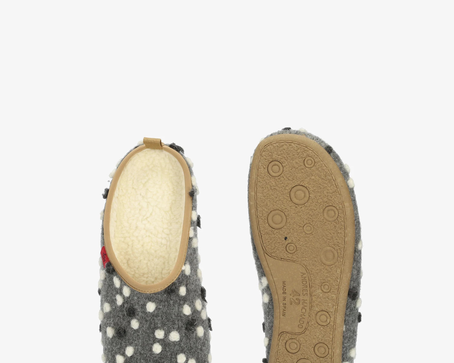 Komfort, styl i jakość to przymiotniki najlepiej definiujące nasz model DYNAMIC. Kapcie wykonane z najwyższej jakości wełny w kolorze antracytowym z kremowymi i czarnymi kropkami. W połączeniu z wyjmowaną, białą wkładką z owczej skóry, kapcie DYNAMIC to prawdziwa przyjemność dla Twoich stóp. Kremowa wulkanizowana podeszwa zapewnia większy komfort chodzenia, pozwalając w pełni cieszyć się czasem spędzonym w domu. Model DYNAMIC jest produkowany w Hiszpanii z najlepszych materiałów i dostępny w rozmiarach od 37 do 45. Szeroka gama rozmiarów oznacza, że każdy może cieszyć się tymi fantastycznymi kapciami.