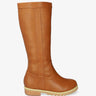 Buty w stylu rustykalnym z miękkiego, karmelowego materiału. Wysoka cholewka z pasującym wewnętrznym zamkiem błyskawicznym. Pasek boczny na zewnątrz i na górnej krawędzi. Zaokrąglony nosek. Gumowa podeszwa. Obcas o wysokości 3 cm pokryty laminatem imitującym drewno. Duże rozmiary od 42 do 45.
