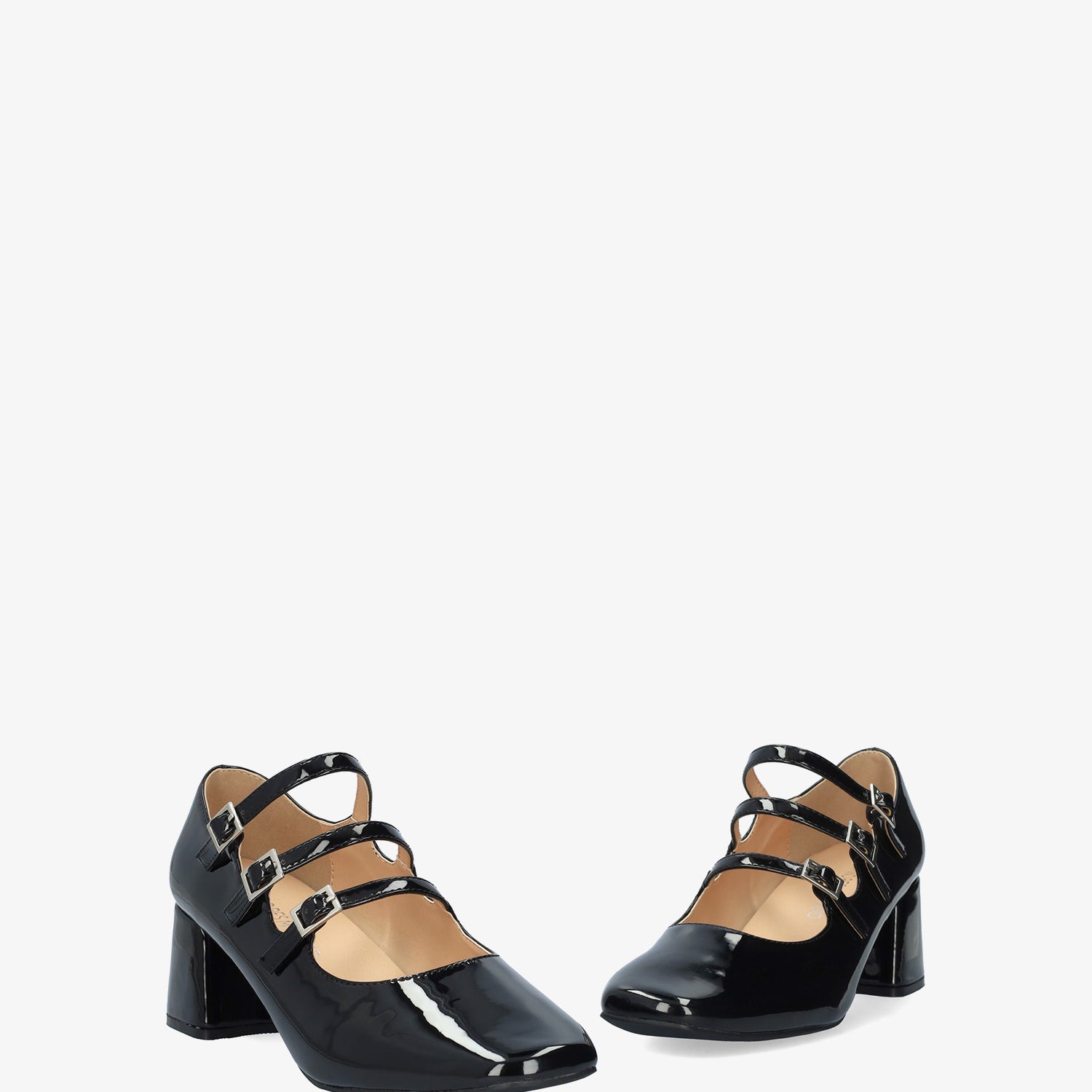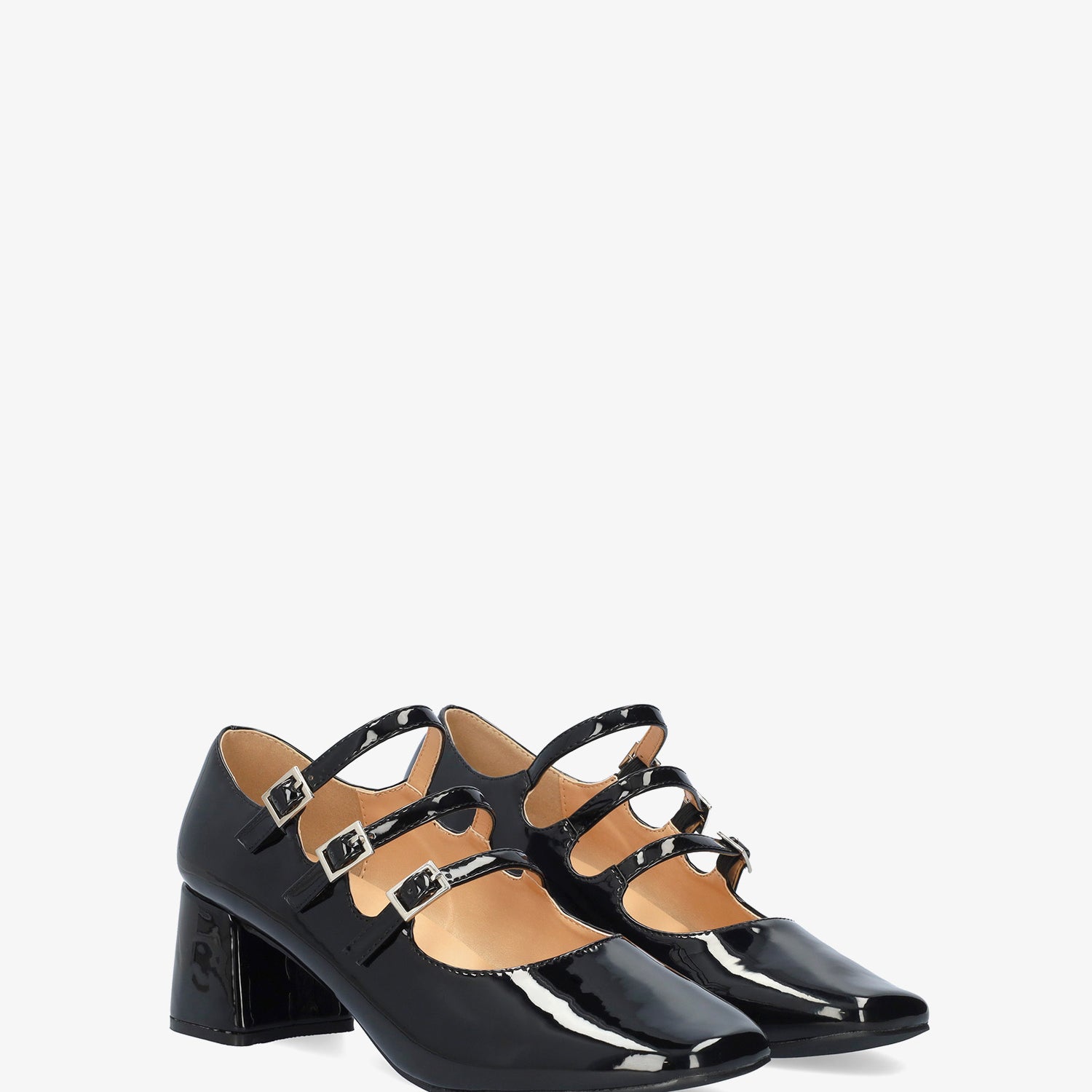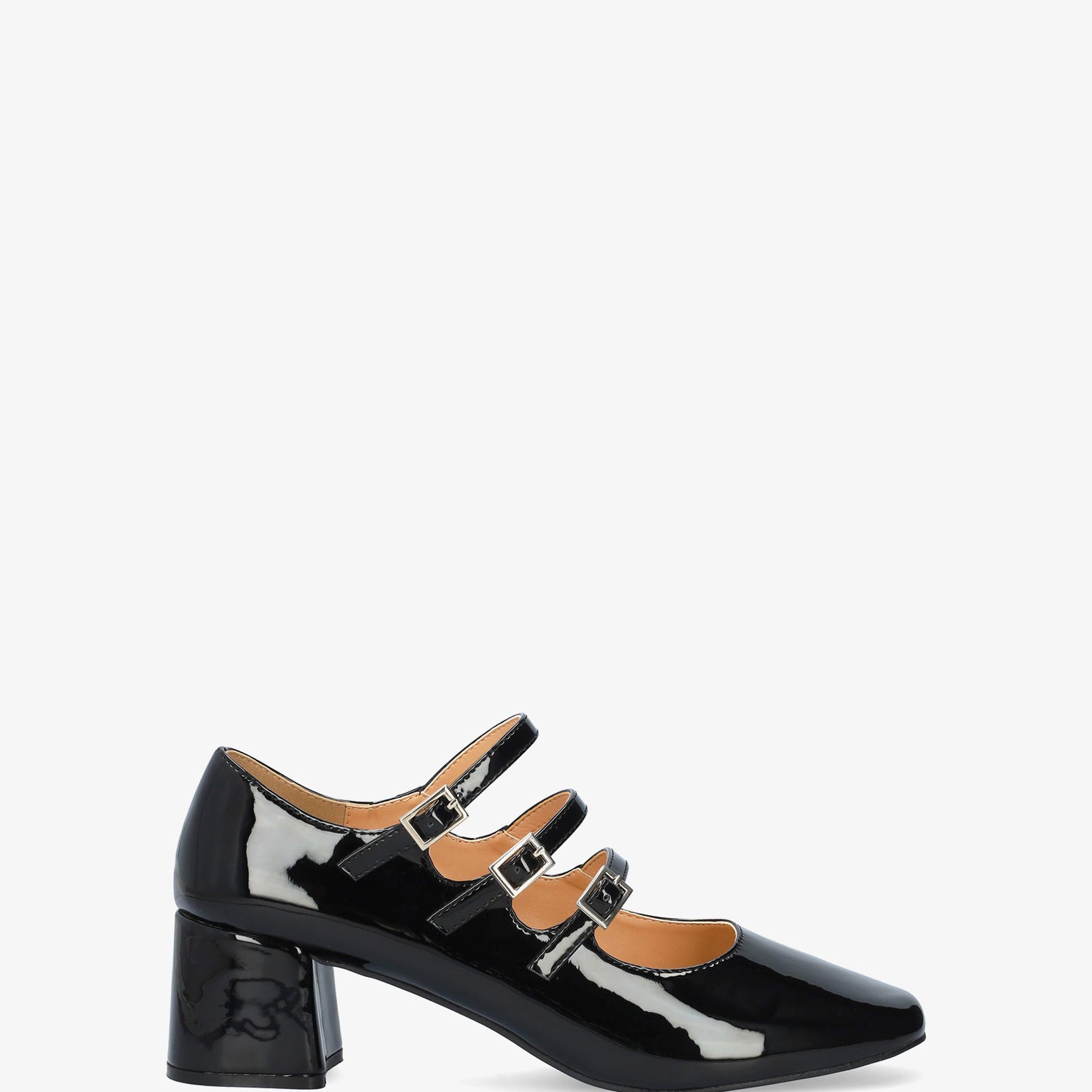 Mary Jane na obcasie z lakierowanego materiału czarny