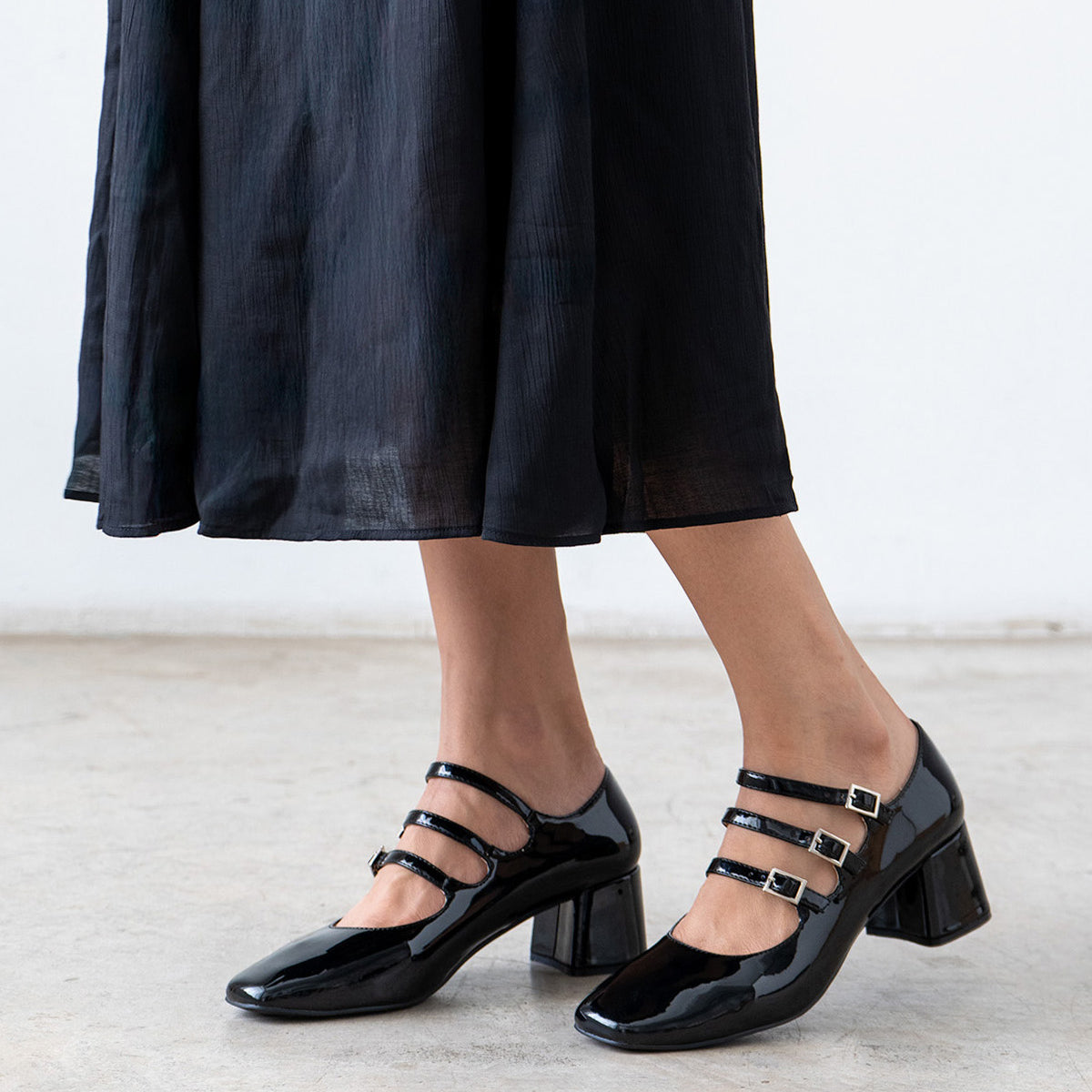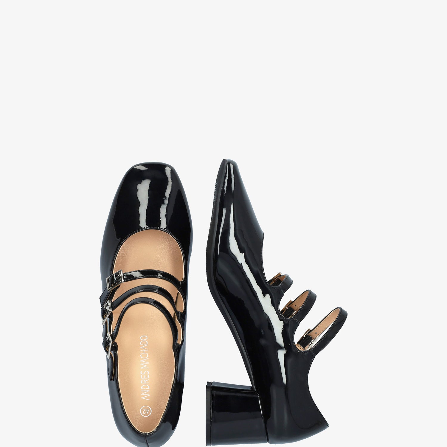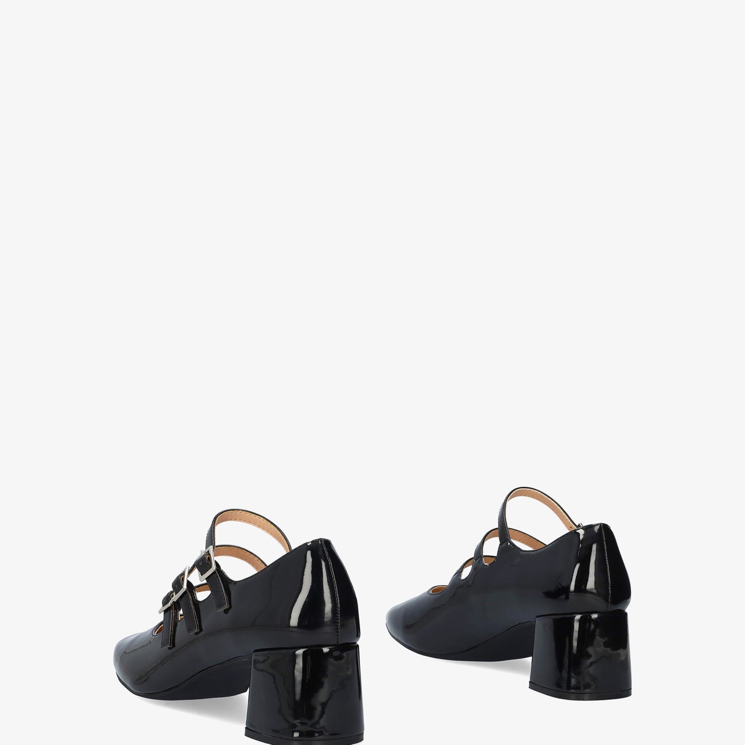Mary Jane na obcasie z lakierowanego materiału czarny