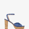 Niebieskie materiałowe sandały na obcasie z efektem korka