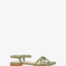 Płaskie sandały ze skóry khaki. Pasek rurkowy, wiązany z przodu. Zapięcie z boku na klamrę, pasek wokół kostki wiązany rurkowymi paskami. Zakończone zaokrągloną i otwartą końcówką. Obcas 2 cm dla małych rozmiarów od 32 do 35. Obcas 2 cm dla dużych rozmiarów od 42 do 45. Wyprodukowano w Hiszpanii