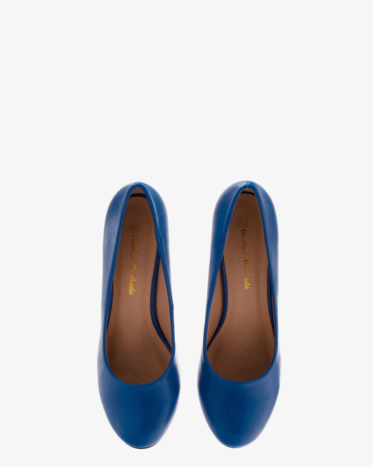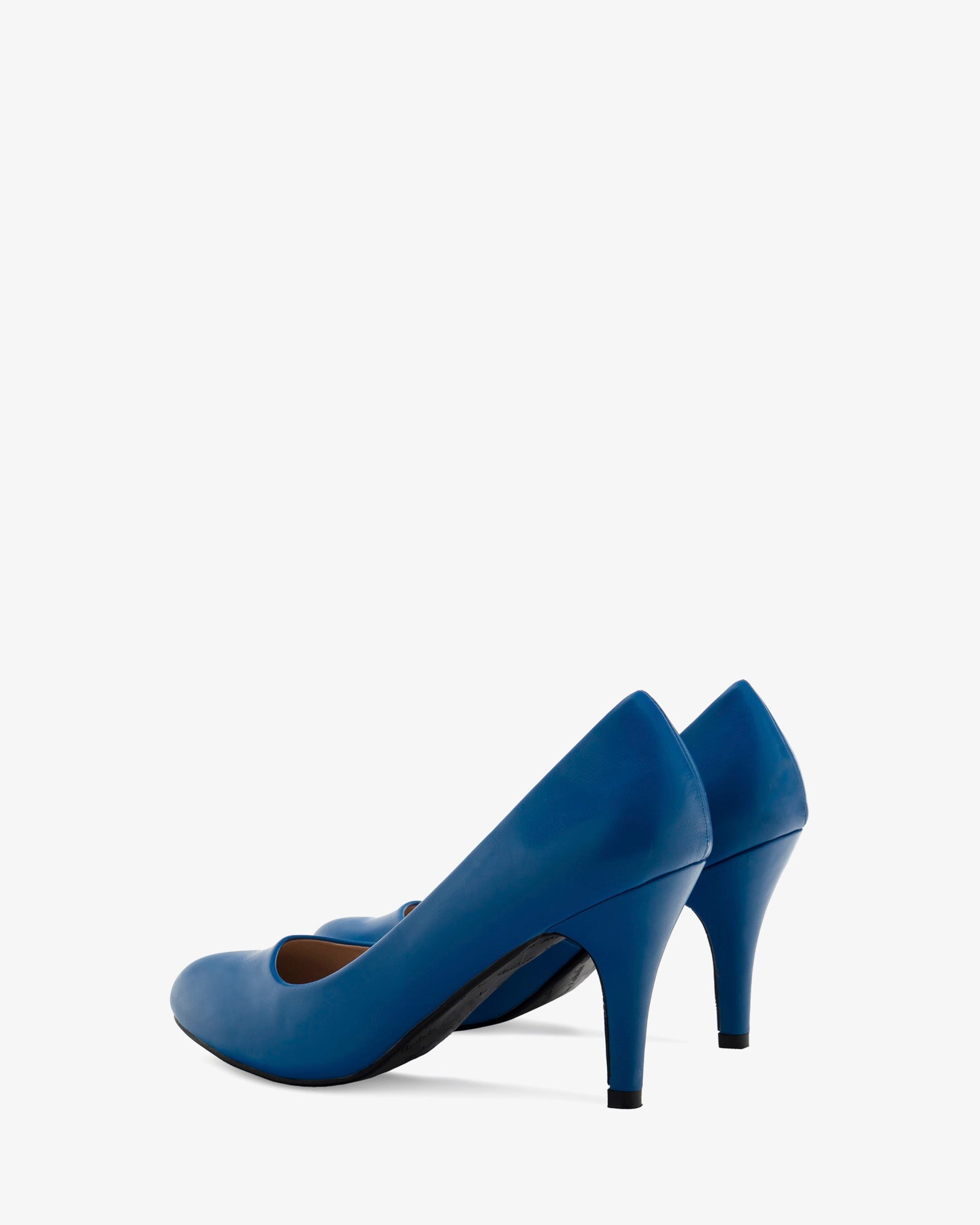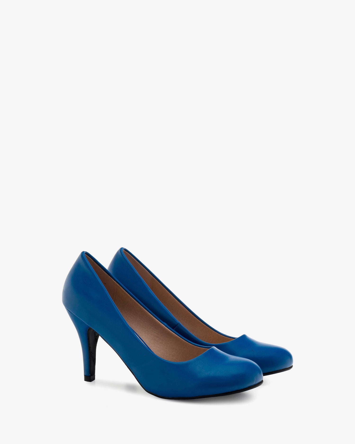 Klasyczny salon w delikatnym błękicie. Klasyczne kopyto i pięta. Zaokrąglony nosek i cienki obcas w tym samym kolorze we wszystkich rozmiarach. Małe rozmiary od 32 do 35 z obcasem 9 cm. Rozmiary średnie od 36 do 41, obcas 9,5 cm. Rozmiary od 42 do 46, obcas 10 cm. Ten model jest zaniżony, zaleca się wybór rozmiaru o jeden większego niż zwykle.
