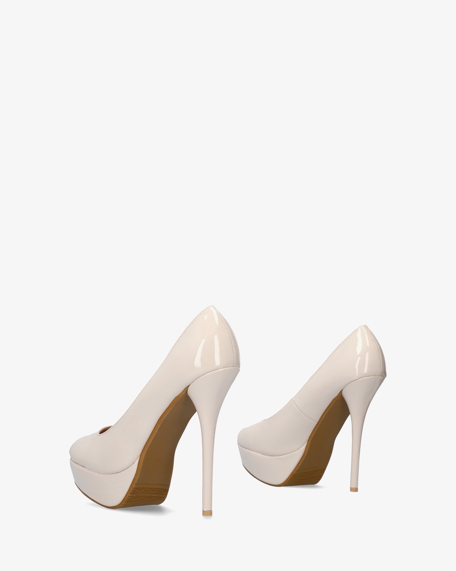 Piękne beżowe, lakierowane czółenka z okrągłym noskiem i dopasowanym wnętrzem. Małe rozmiary od 32 do 35, na obcasie typu szpilka o wysokości 12 cm i platformie o wysokości 3 cm. Rozmiary średnie od 36 do 41, na obcasie typu szpilka o wysokości 13 cm i platformie o wysokości 3 cm. Rozmiary od 42 do 45, z obcasem typu szpilka o wysokości 14 cm i platformą o wysokości 3 cm.