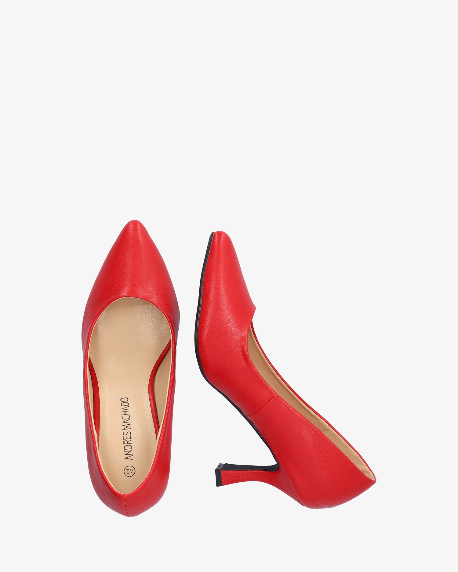 Salon w stonowanym czerwonym kolorze. Wykończenie w najlepszym stylu. Obcas typu „kaczuszka” o wysokości 7 cm dla małych rozmiarów od 32 do 35. Obcas o wysokości 8,5 cm dla dużych rozmiarów od 42 do 45.